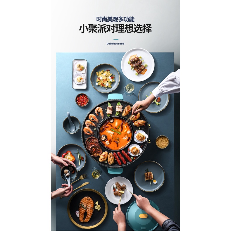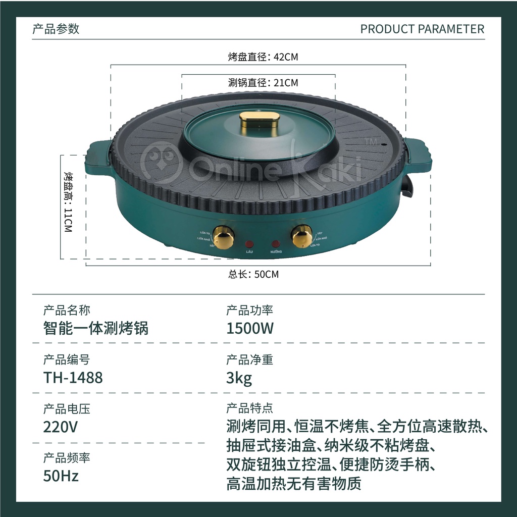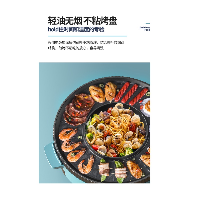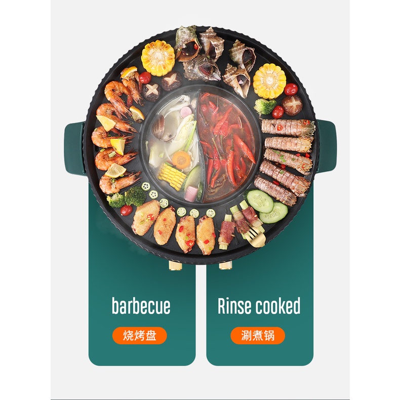 TASHIRO 2 IN 1 BBQ Grill & Steamboat Hot Pot Shabu Electric Smokeless Non Stick Roasted Barbecue Pan Cooker Periuk Dapur