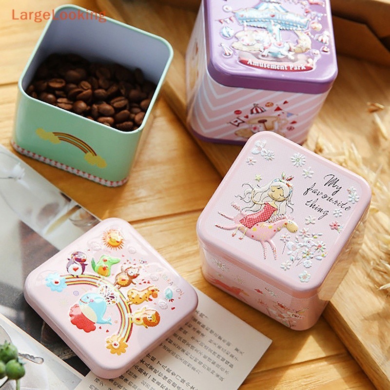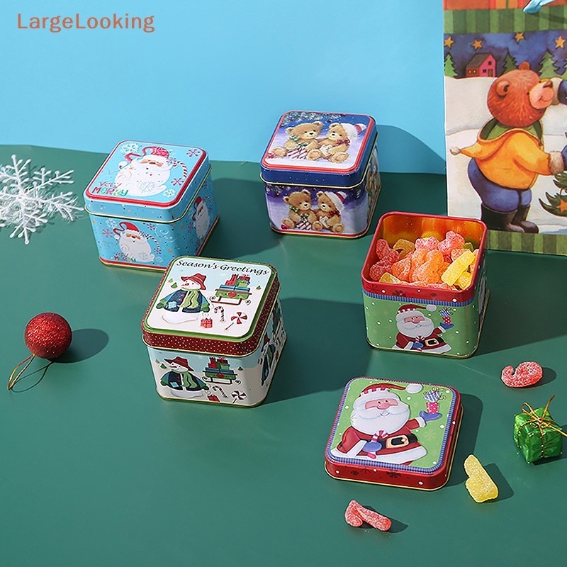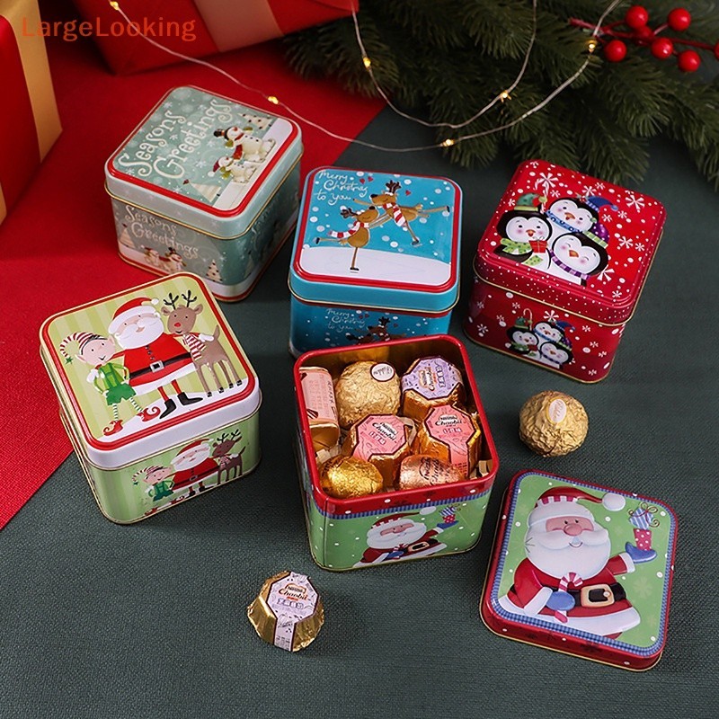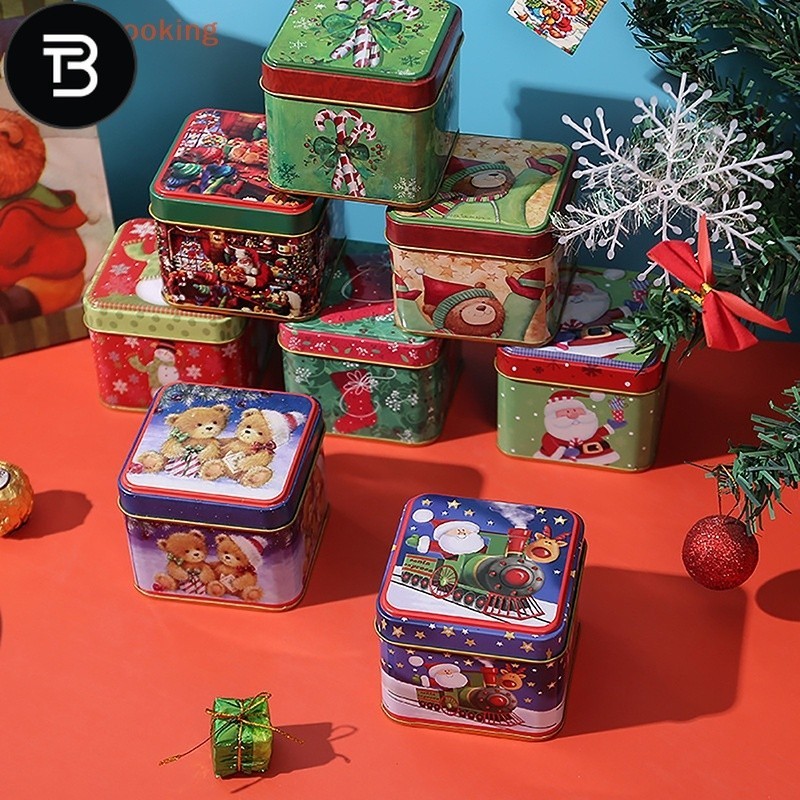 TB 1pcs Tinplate Square Candy Tin Can Jars With Lid Container Empty Box For Christmas Cookie Candy Storage