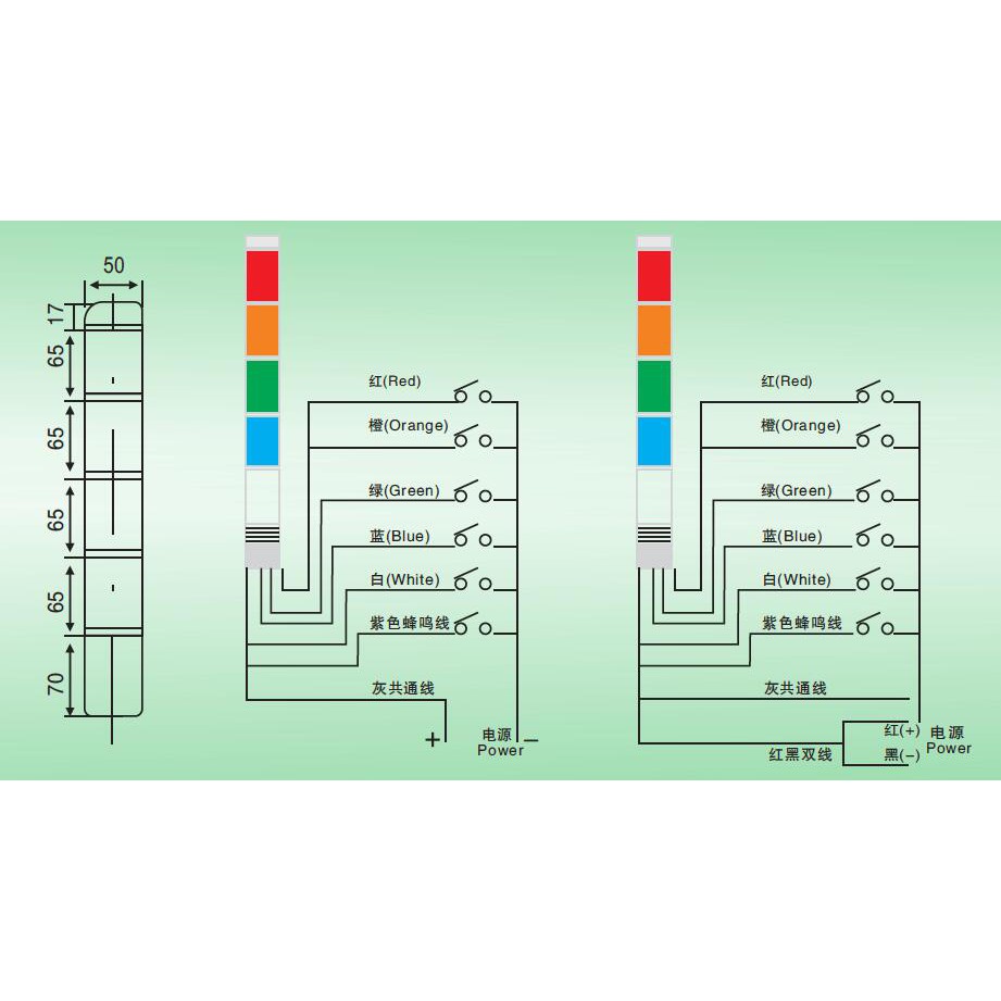 TB50-3T-J 50mm three-layer signal tower light alarm lamp three led colors always light or flashing with buzzer