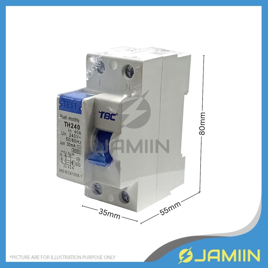 TBC 2 POLE 30mA / 100mA Residual Current Circuit Breaker ELCB Electrical Component 25A / 40A / 63A 2 Pole ELCB/RCCB MCB