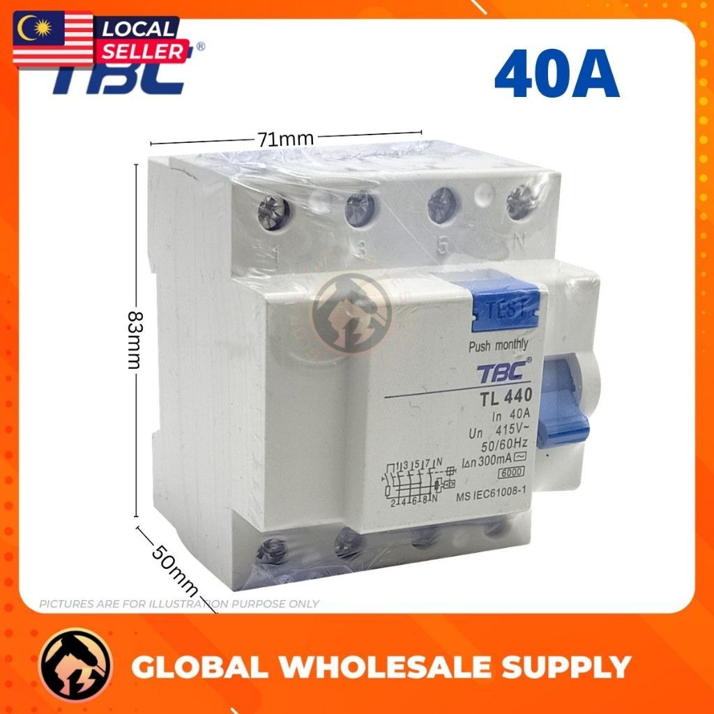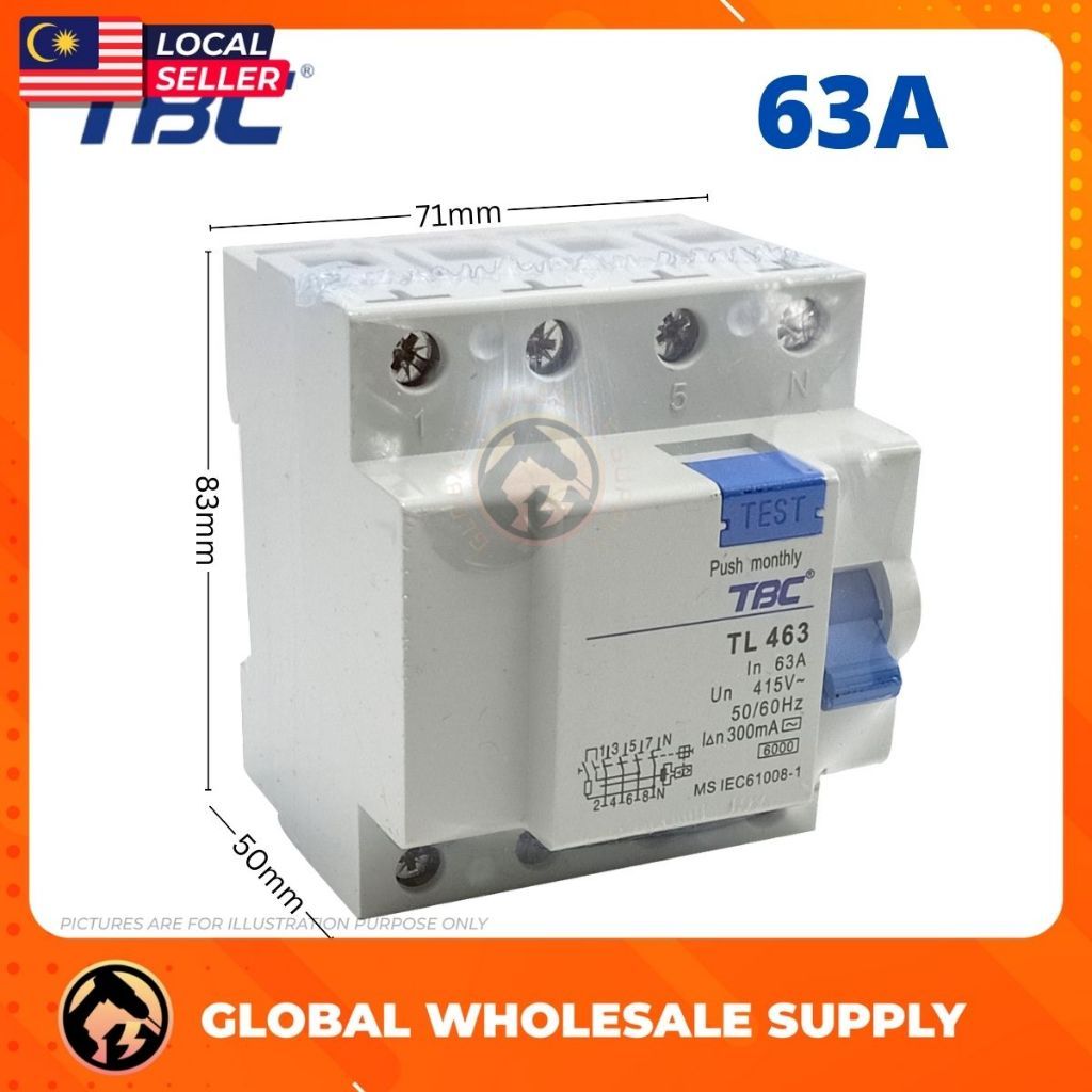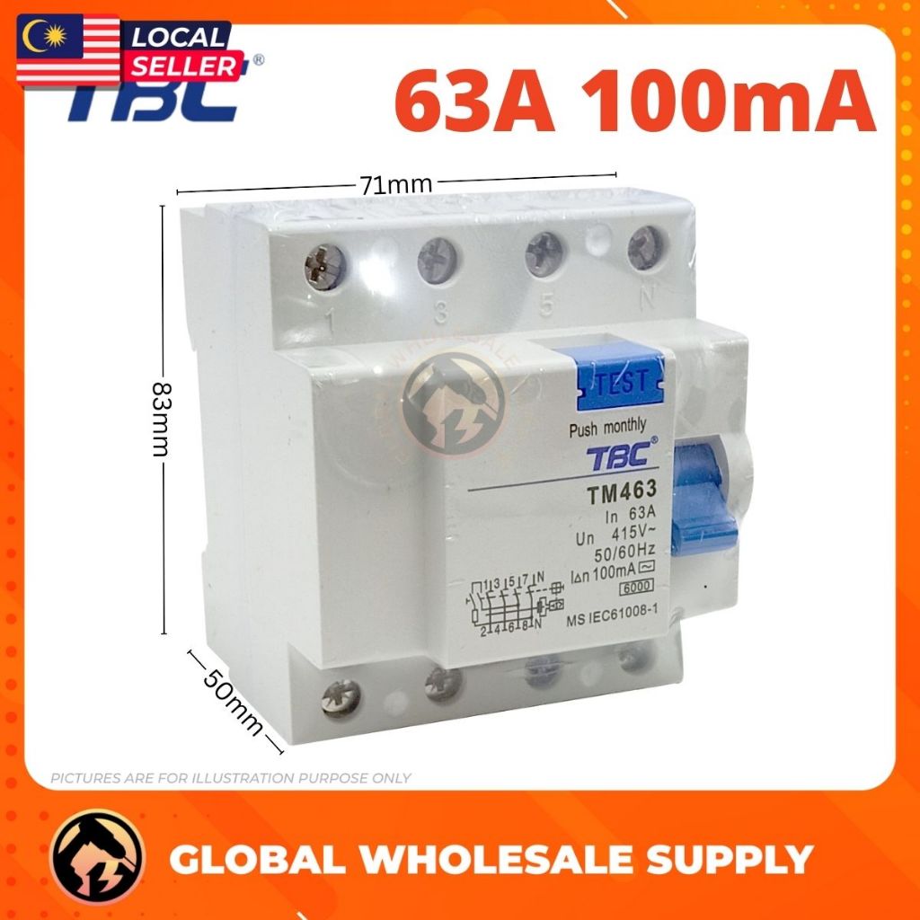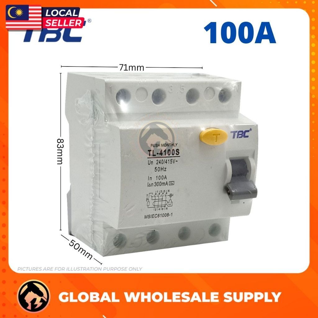 TBC 4 POLE 300mA Residual Current Circuit Breaker ELCB 40A / 63A / 100A 4 Pole 300mA ELCB / RCCB