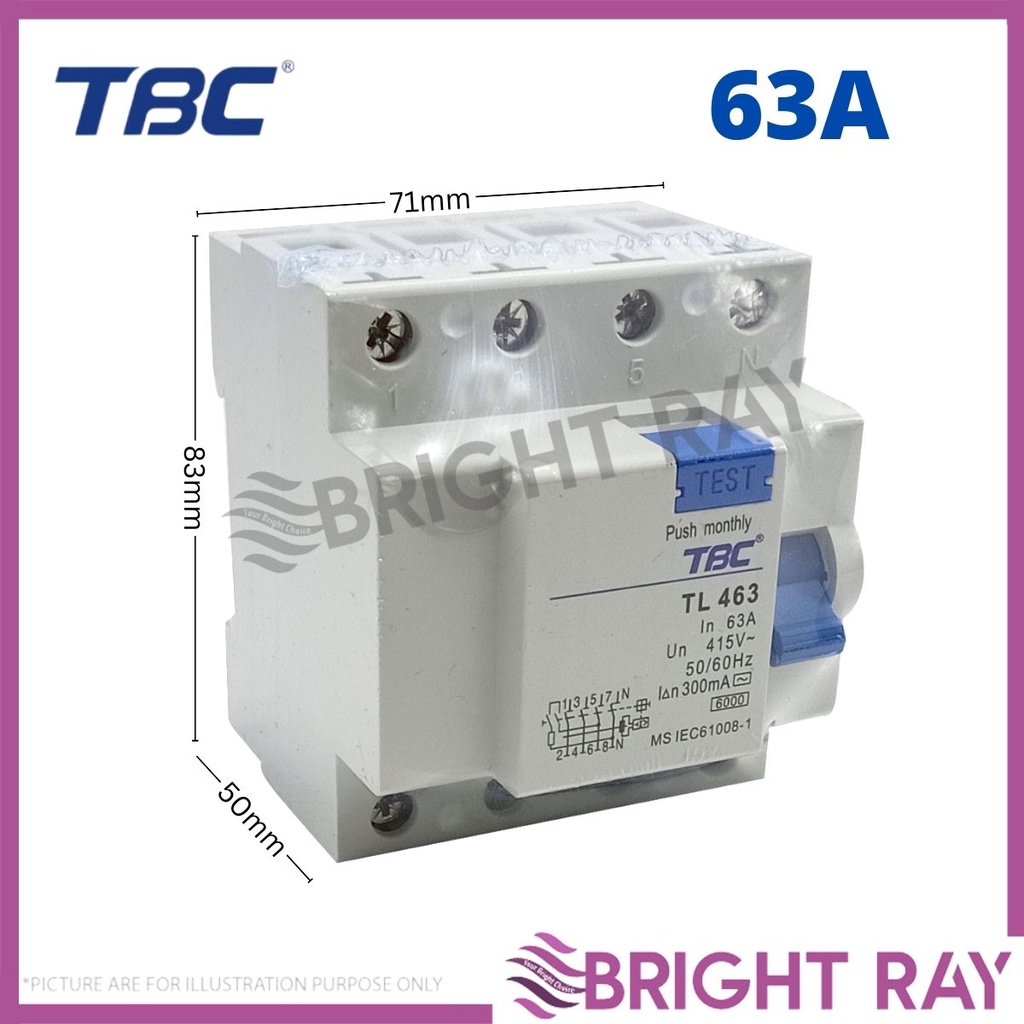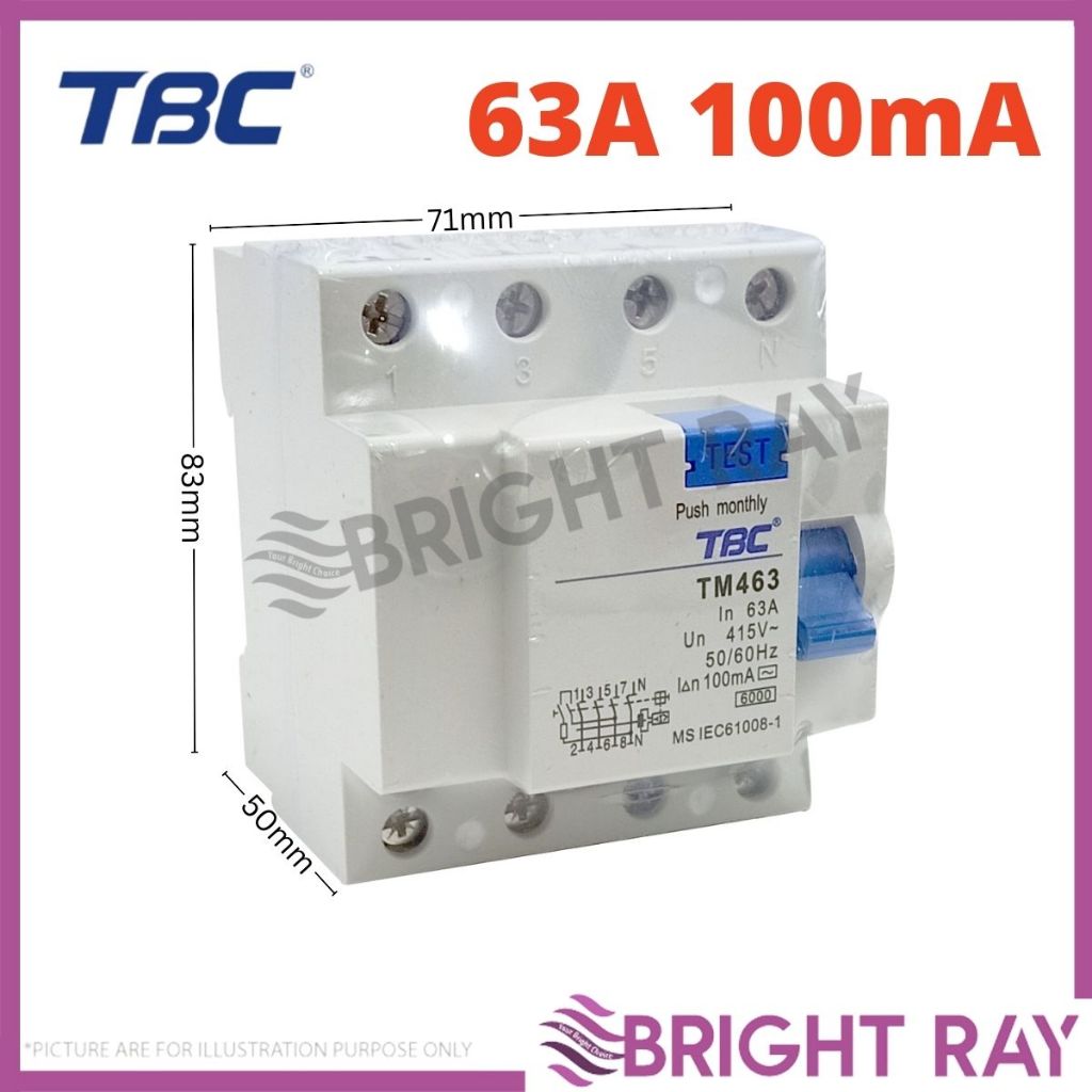 TBC 4 POLE 300mA Residual Current Circuit Breaker ELCB 40A / 63A / 100A 4 Pole 300mA ELCB / RCCB