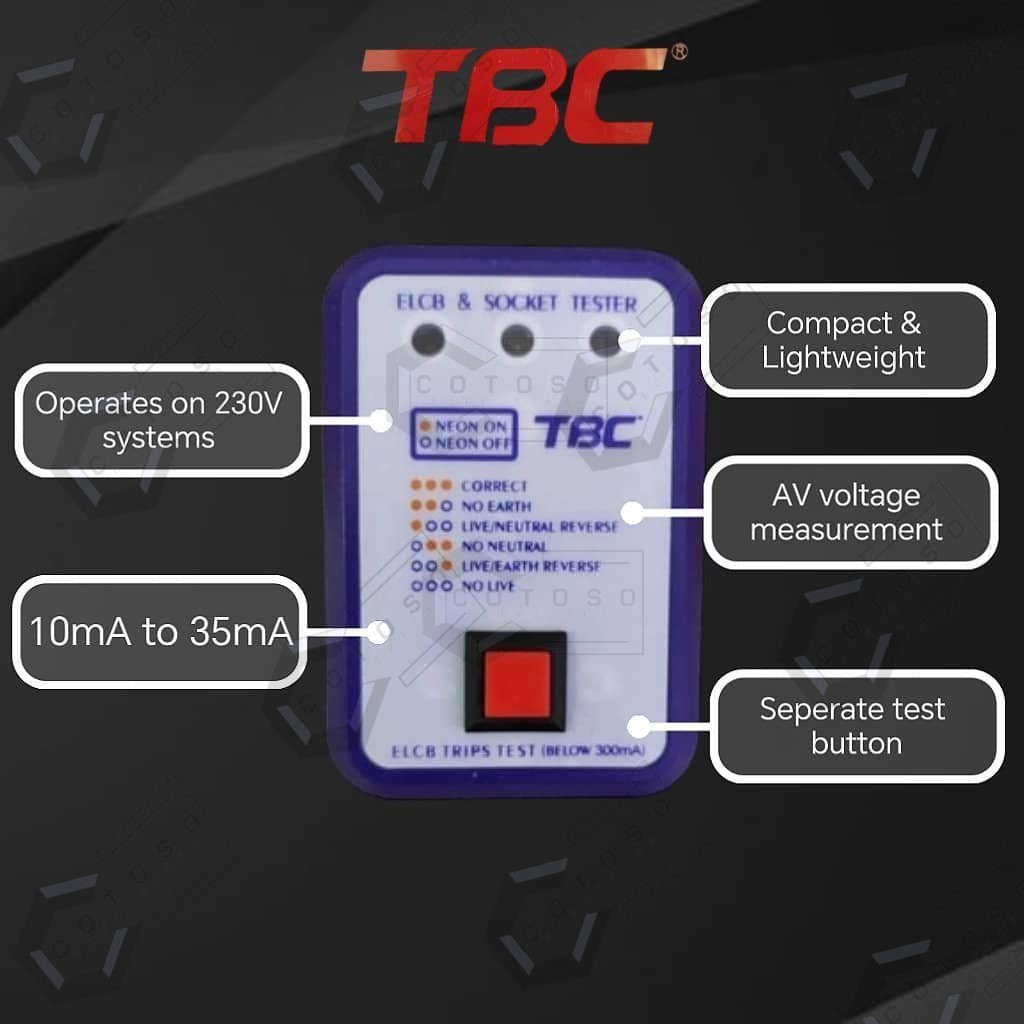 TBC SOCKET POLARITY EARTH LEAKAGE TESTER ( PLUG TESTER )