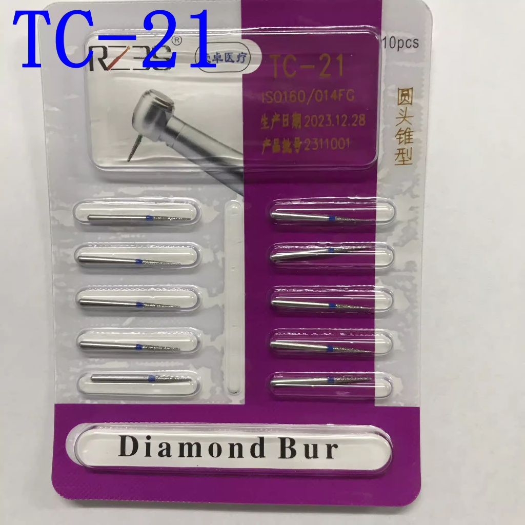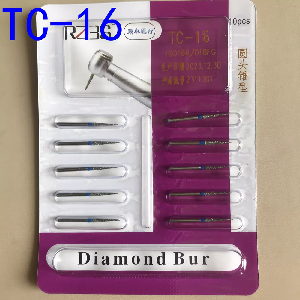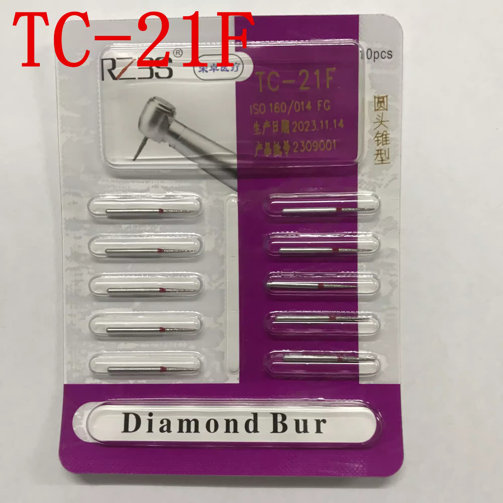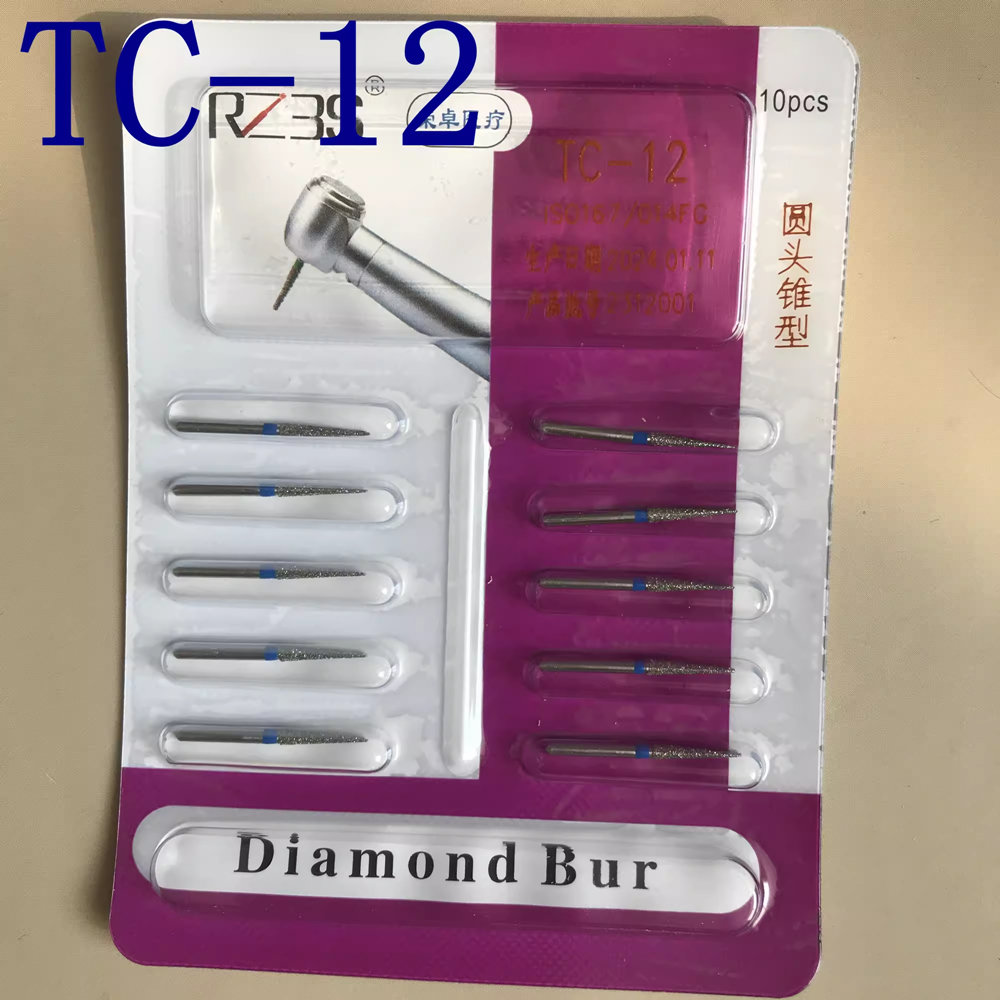 TC Series Dental Diamond Bur Drill Dia-burs for High Speed Handpieces Medium FG 1.6M Dentistry Materials Tool 10 Pcs 1 Board