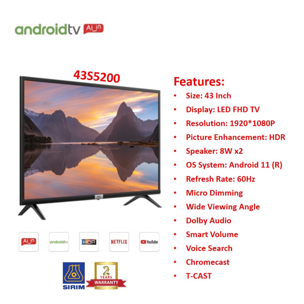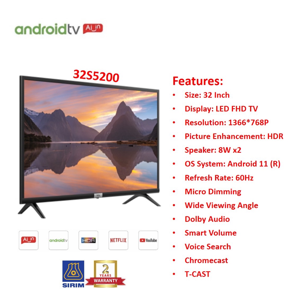 TCL Android Smart AI TV with Voice Search Google Assistant & Upgradable Android 32S5200 / 43S5200