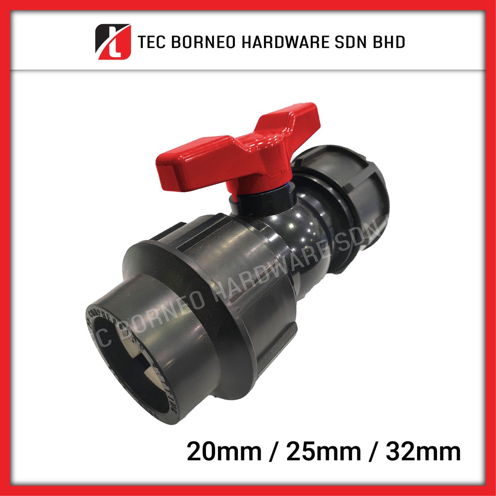 TEC [1 PC] 20mm / 25mm / 32mm Heavy Duty Poly Ball Valve HDPE Compact Polypipe Stop Tap Compression Fittings