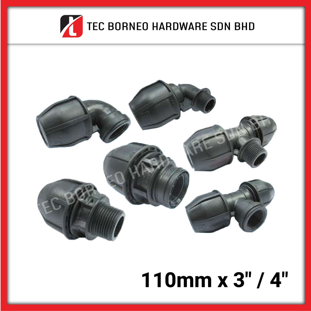 TEC [110mm] HDPE Poly Pipe Fitting Penyambung Polypipe Male Female Tee Elbow Bend MTA FTA Threaded Adaptor
