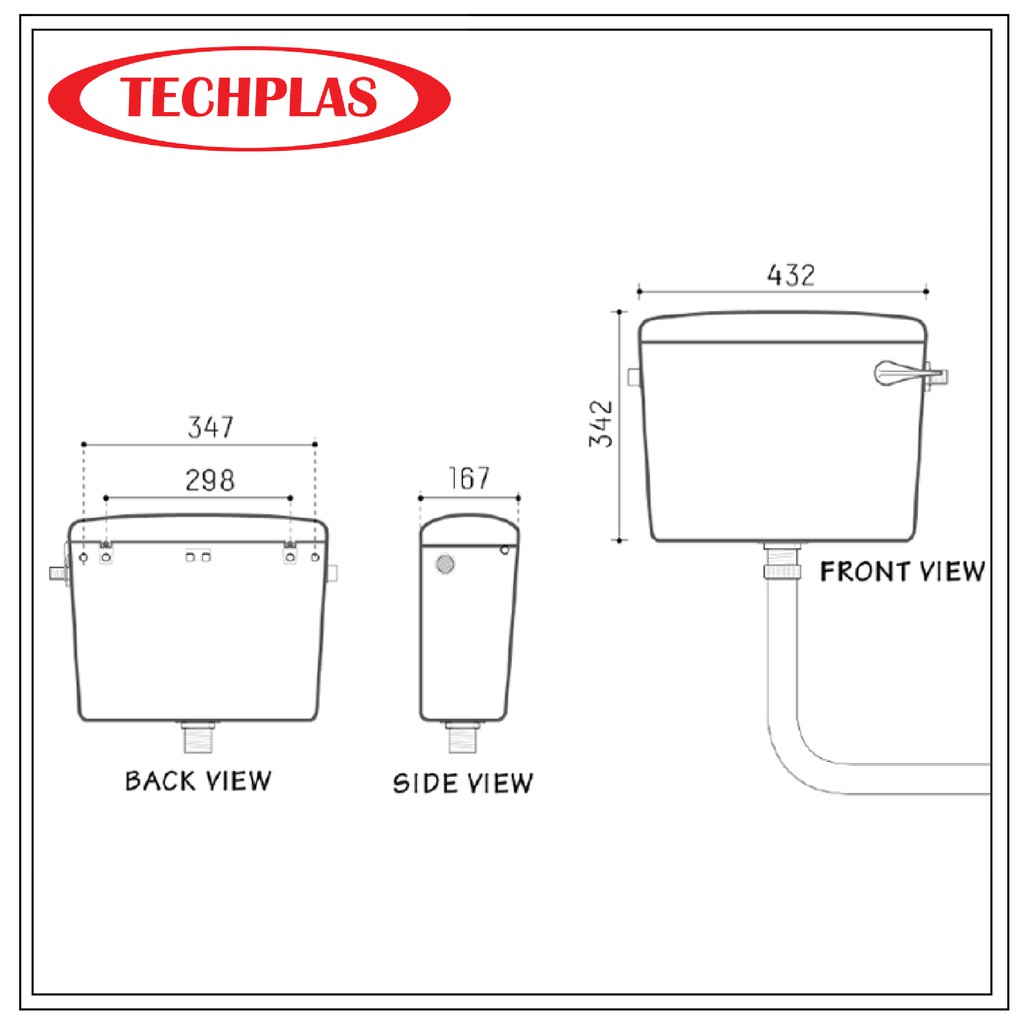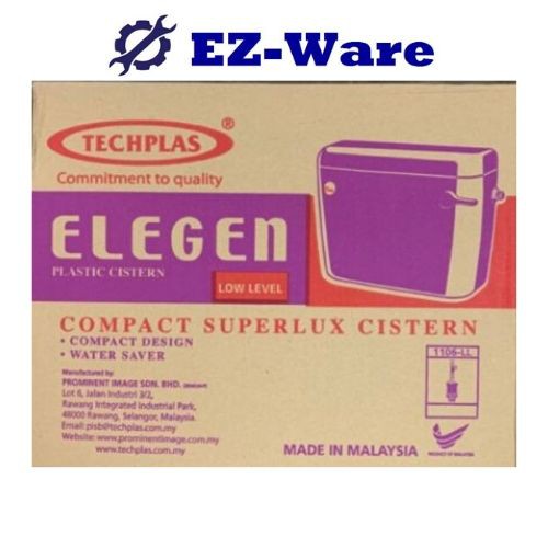 TECHPLAS 1106-Low Level ELEGEN LEVEL PLASTIC Cistern /Tangki Tandas Duduk / toilet water tank - White