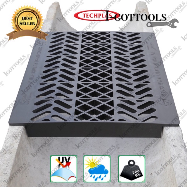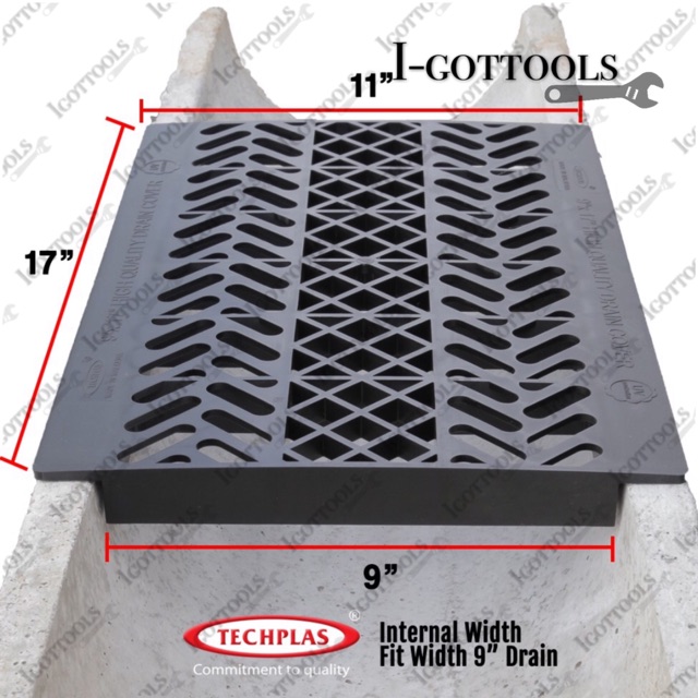 TECHPLAS Drain Cover 9" x 17" UV Protect PVC (GREY)