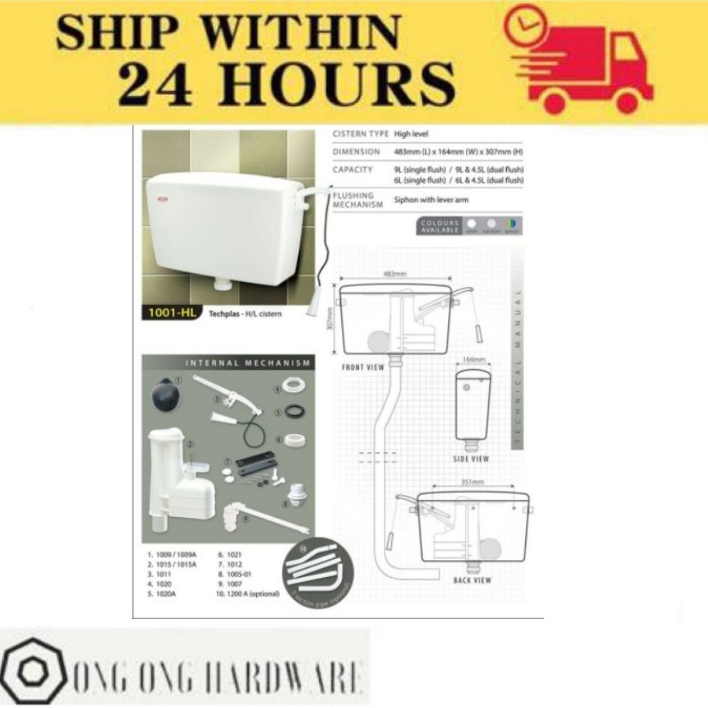 TECHPLAS Elegen Plastic Cistern High Level /WATER CISTERN * COMPLETE SET/( TOILET WATER TANGKI ) - SINGLE FLUSH SYSTEM *