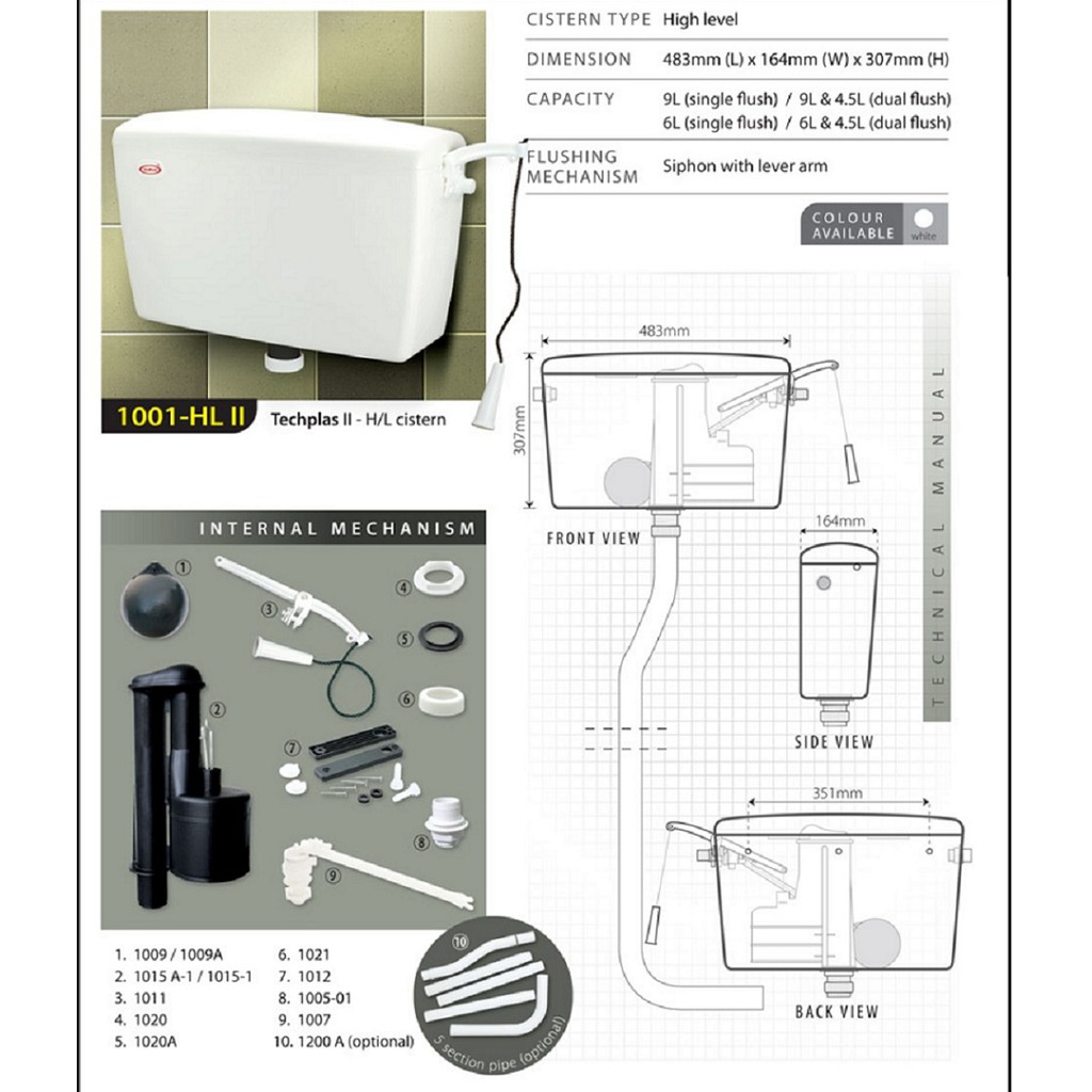 TECHPLAS PVC CISTERN HIGH LEVEL 9LTTER / TANGKI BILIK AIR