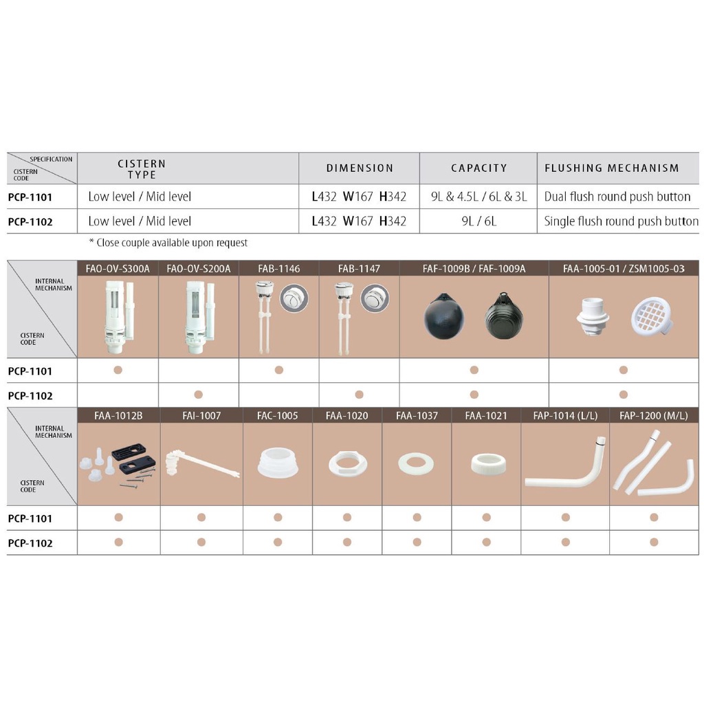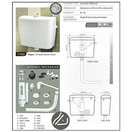 TECHPLAS Single Flush Push Button Plastic Cistern 1102W