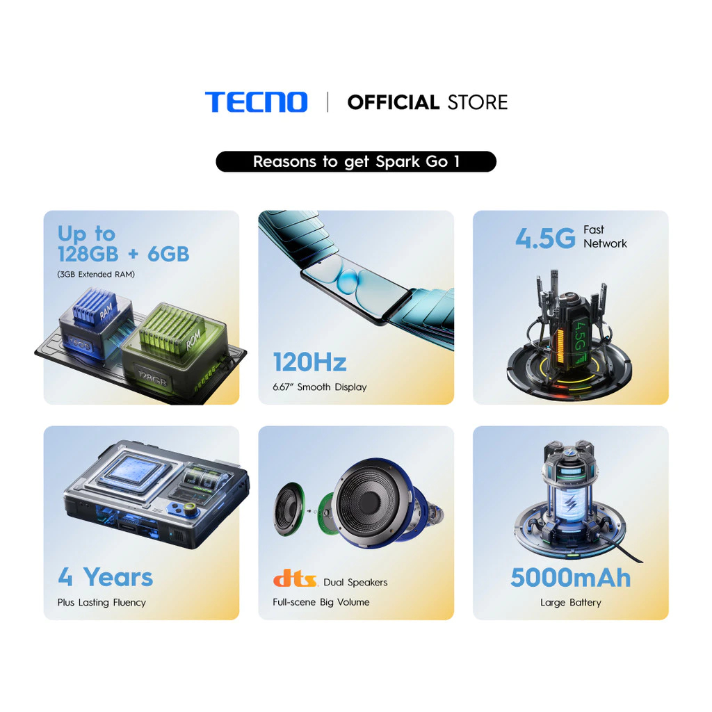 TECNO Spark GO 1S (3GB RAM + 64GB ROM) / GO 1 (3GB RAM +128GB ROM) Smartphone