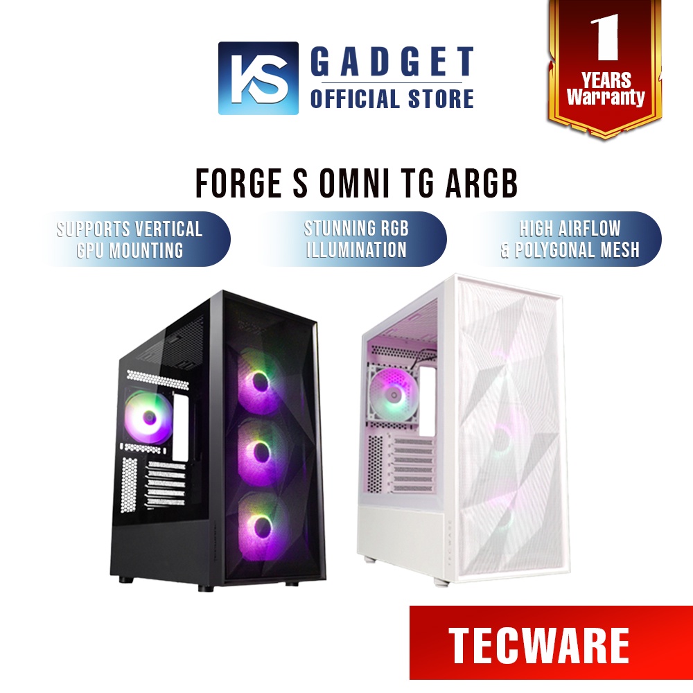 TECWARE FORGE S OMNI TG ARGB ATX MID TOWER CASE AIRFLOW OPTIMIZED [BLACK | WHITE]