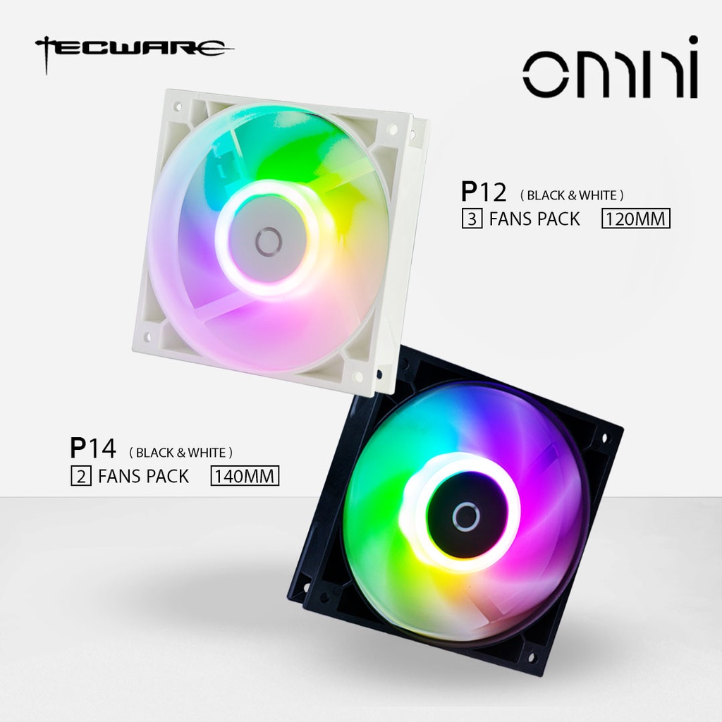TECWARE OMNI P12 P14 , 2 3 FAN PACK ( BLACK ) ( WHITE ) WITH 8-PORT ARGB AND FAN HUB