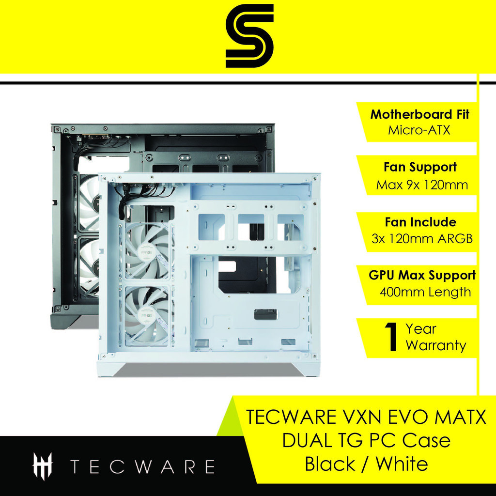 TECWARE VXN EVO DUAL CHAMBER Micro-ATX TG ARGB PC Case (Black/White)