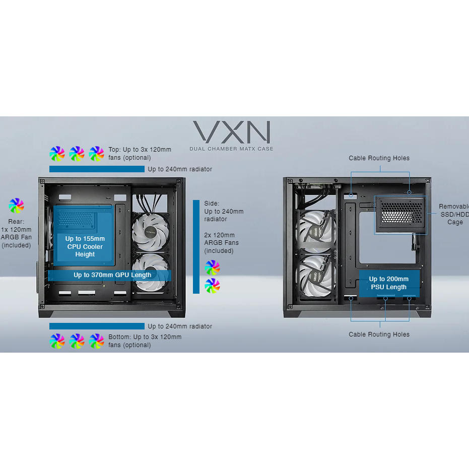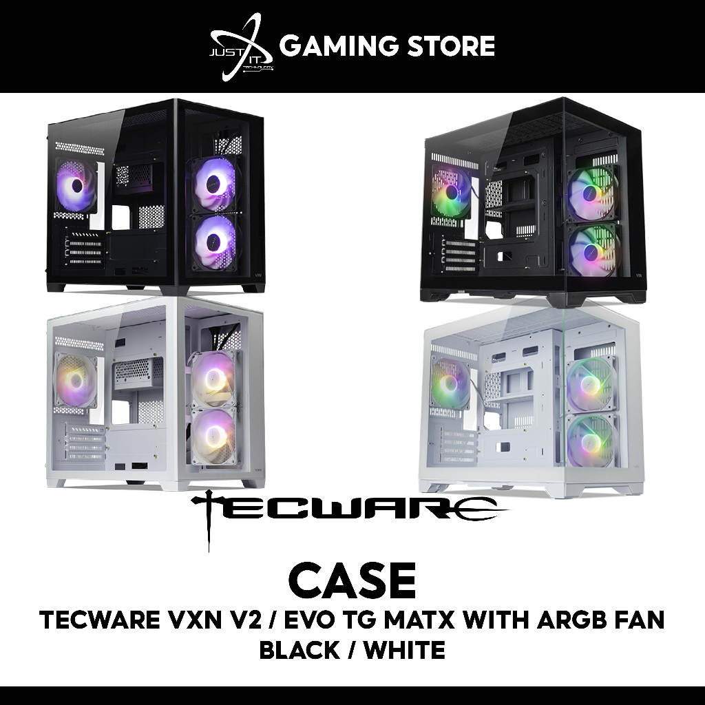 TECWARE VXN V2 VXN EVO TEMPERED GLASS MATX WITH ARGB FAN GAMING CASE / CASING ( BLACK / WHITE )