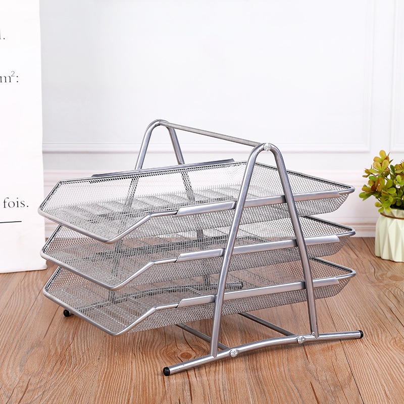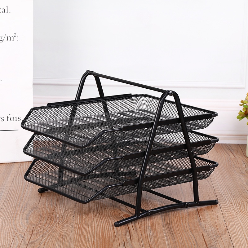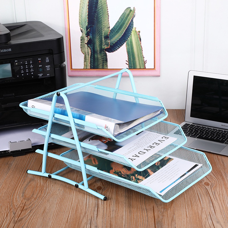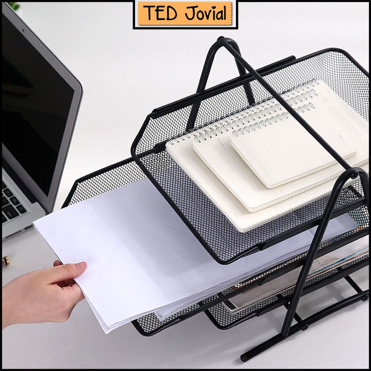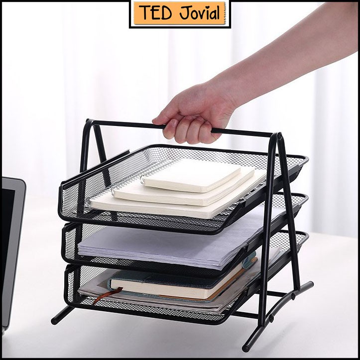 TEDJV 3 Tier Office Desk Organizer Document Tray Letter Paper Metal Mesh Storage