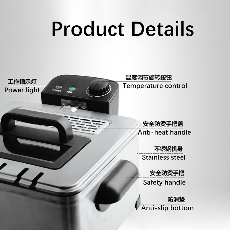 Teemo 5L Electric Deep Fryer Stainless Steel French Fries Cookhouse Machine