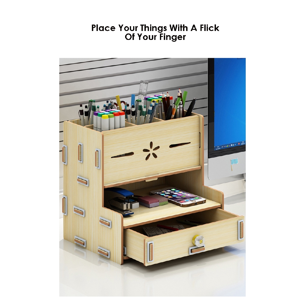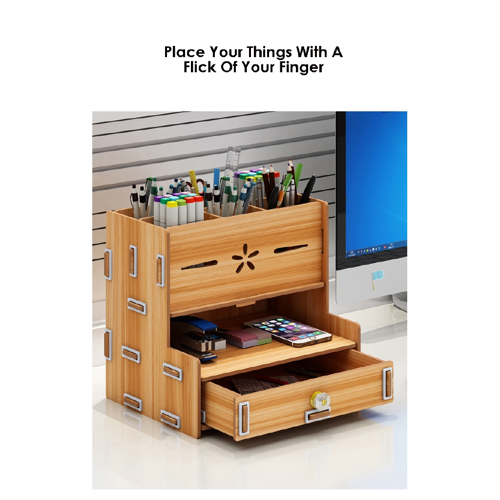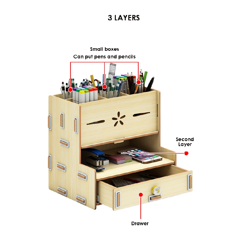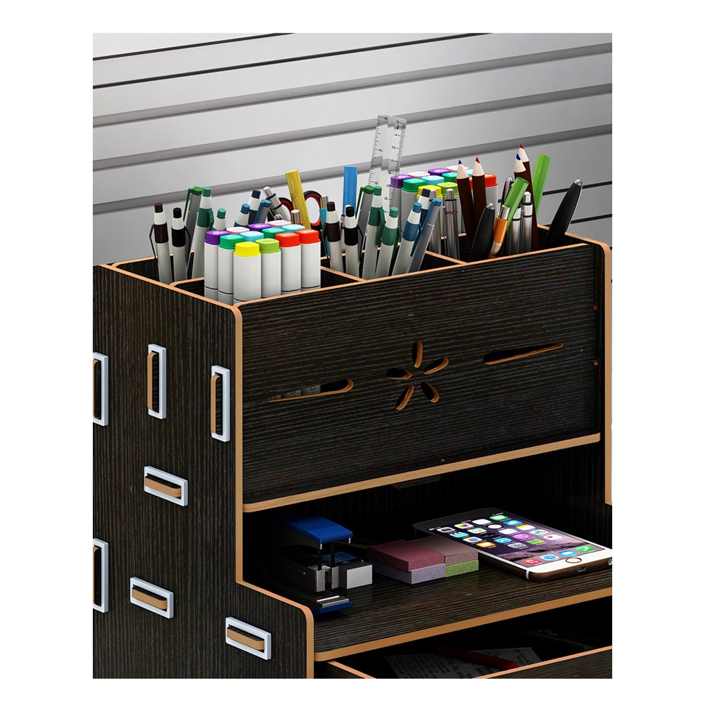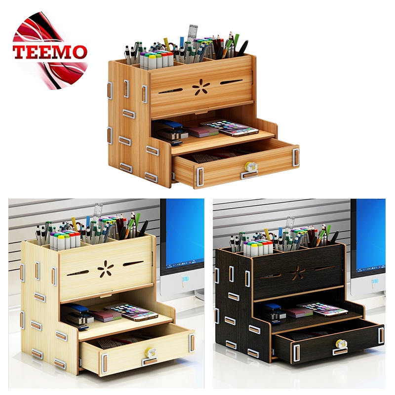Teemo Pen holder Wooden Storage Box Organizer Multifunctional Student Stationery Shelf Office School