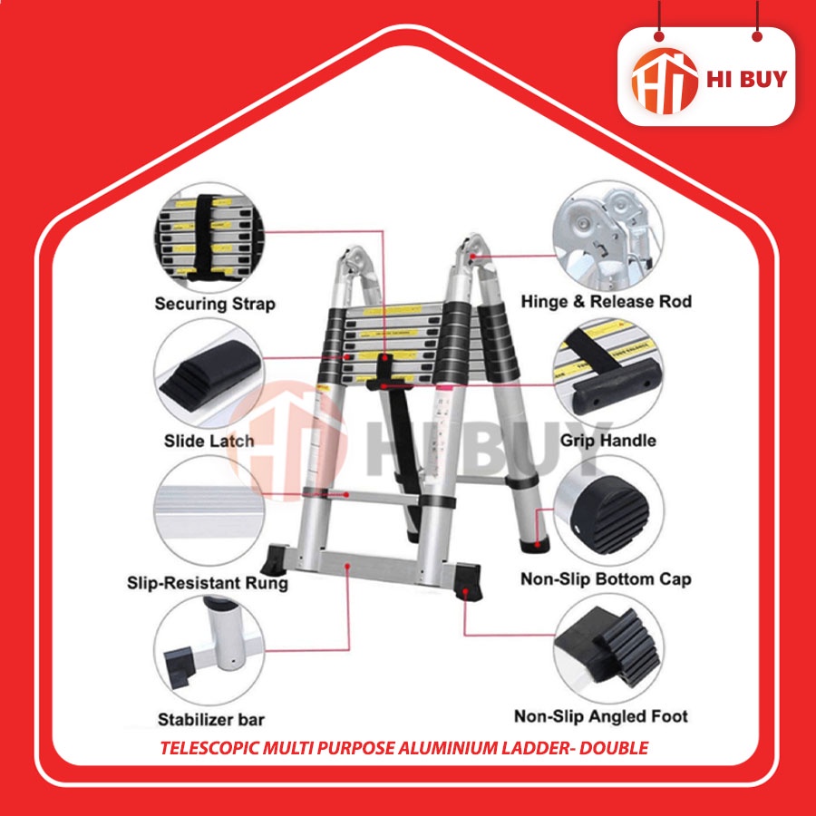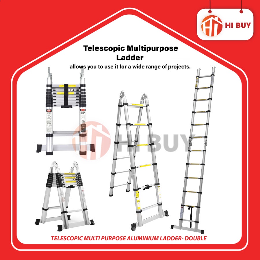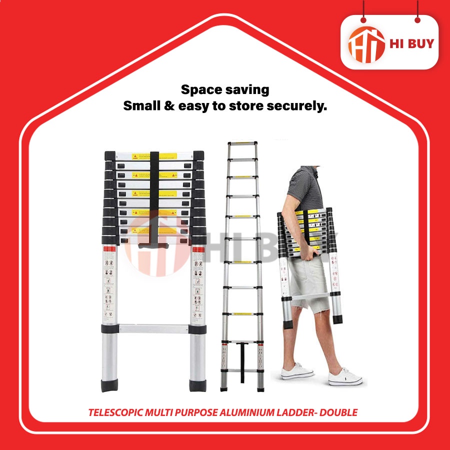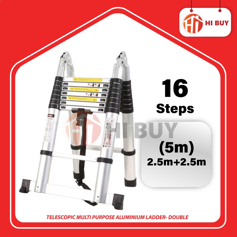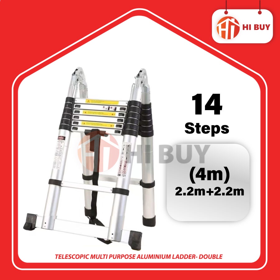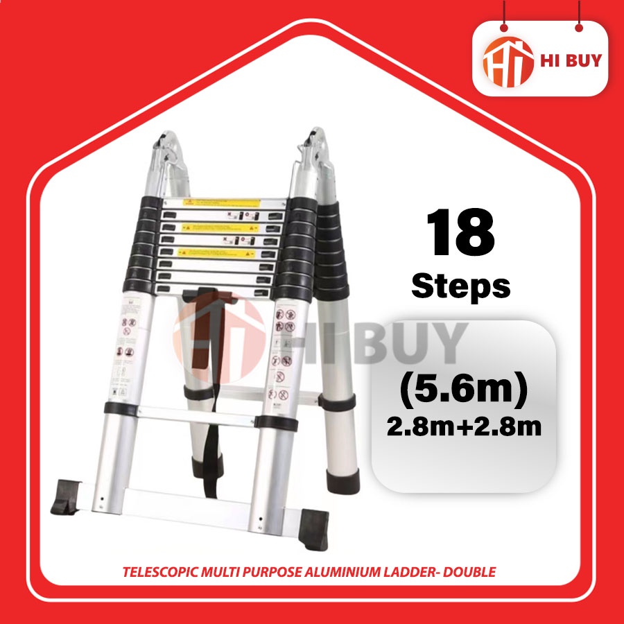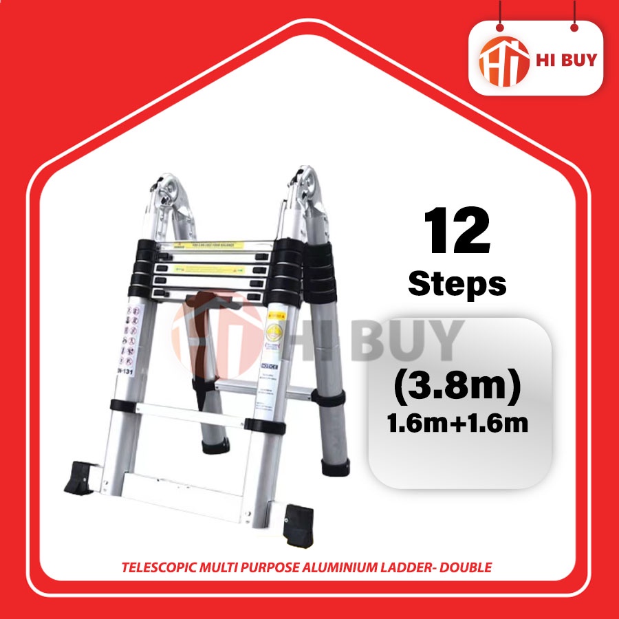 TELESCOPIC MULTIPURPOSE ALUMINIUM LADDER (12/ 14/ 16/ 18 STEPS)/ DOUBLE SIDED EXTENDABLE LADDER/ TANGGA LIPAT