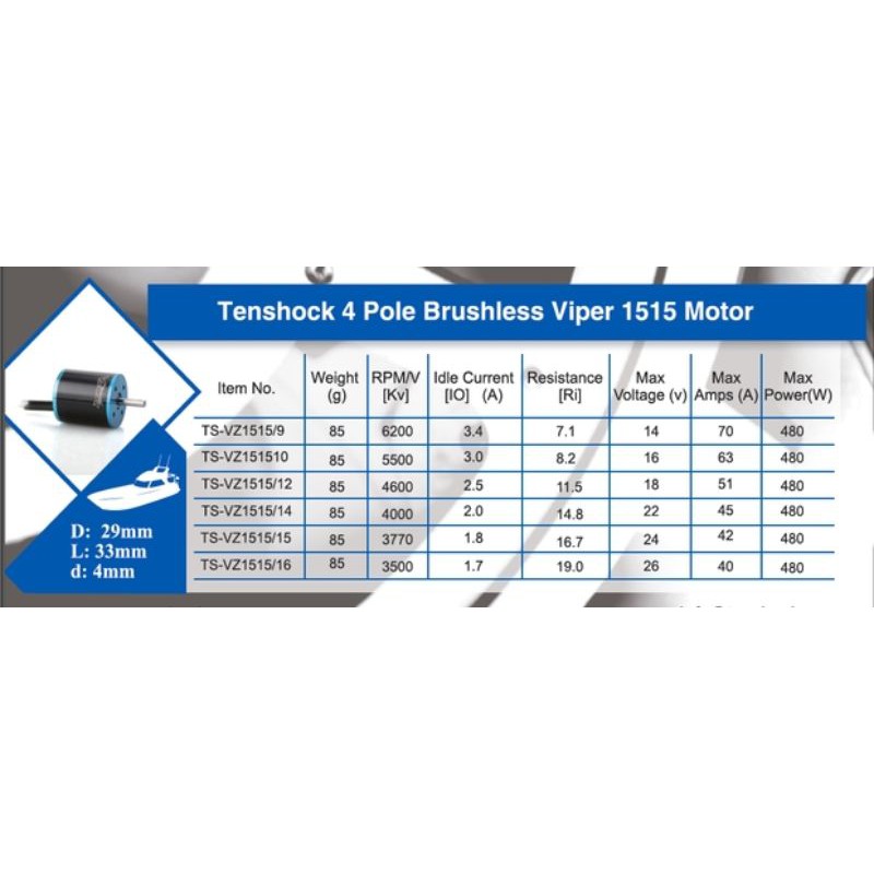 TENSHOCK 4 pole brushless motor VZ1515