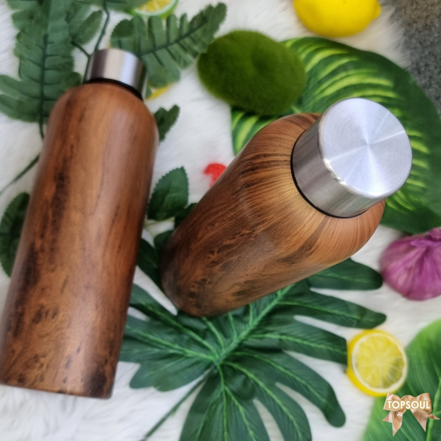 TERMOS 500ml WOODEN CORK Tumbler stainless steel drinking bottle marble wood thermos TS39K