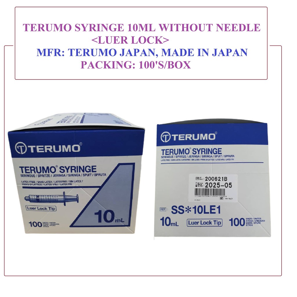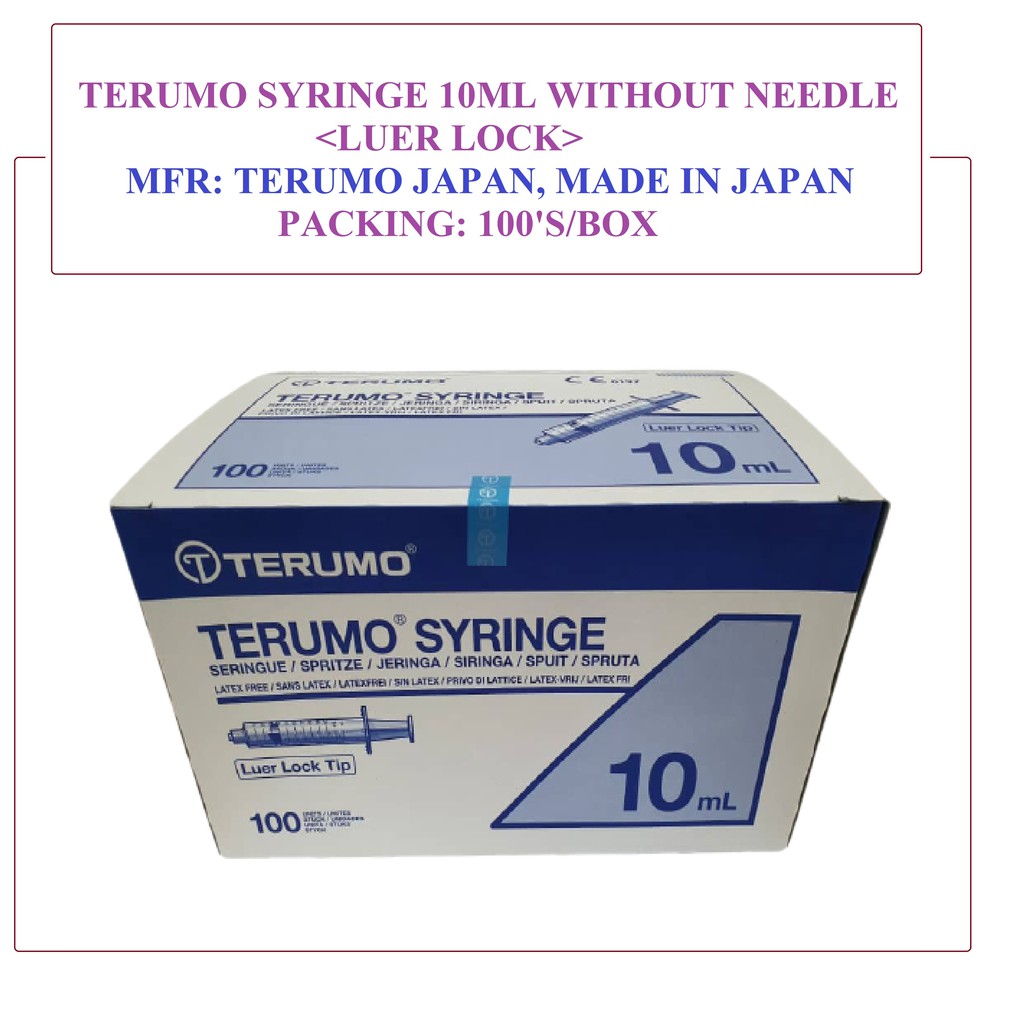 TERUMO SYRINGE 10ML WITHOUT NEEDLE (LUER LOCK TIP); MFR: TERUMO JAPAN, MADE IN JAPAN (100 PCS/BOX)