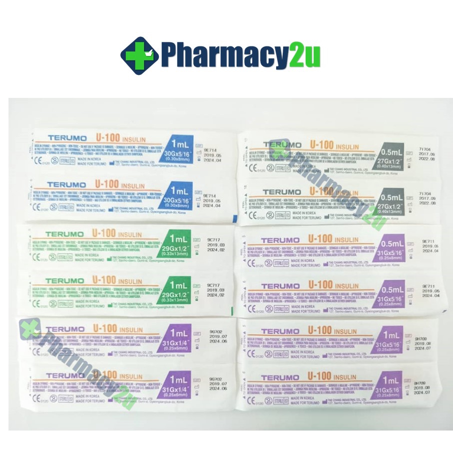 TERUMO U-100 INSULIN SYRINGE WITH NEEDLE 1 PIECE 27G/ 29G/ 30G/ 31G