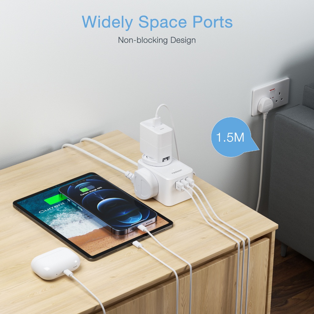 TESSAN Extension Plug Extension Cord Power Strip with USB, Power Socket,Multi Plug Extension Socket