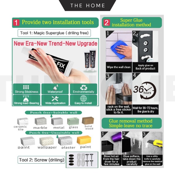 THE HOME Movable Towel Rack Bathroom Towel Bar Wall Mount Bathroom Shelf Penyangkut Taula 50/60 CM