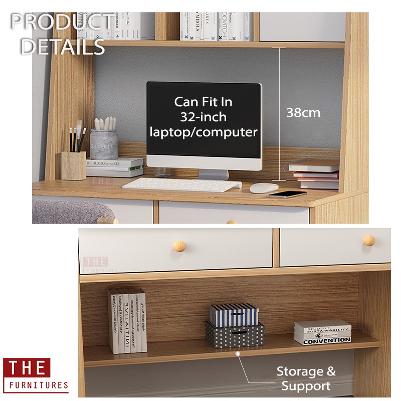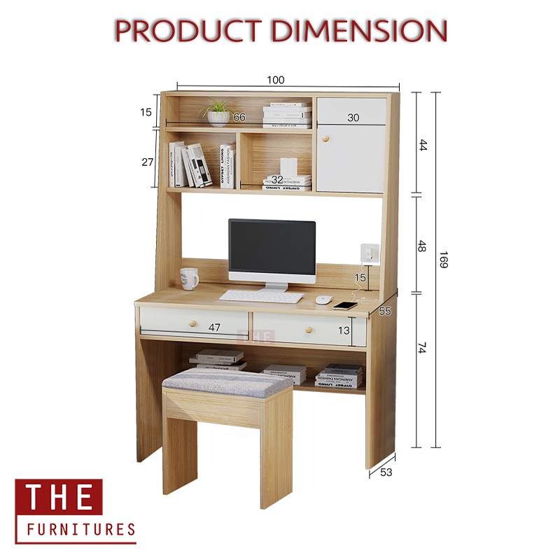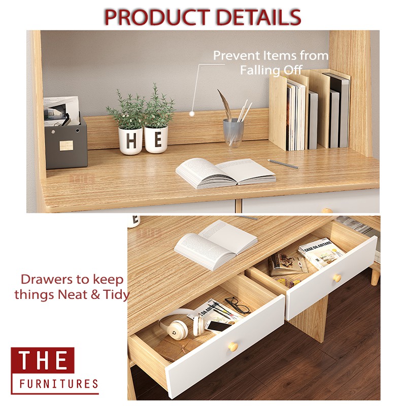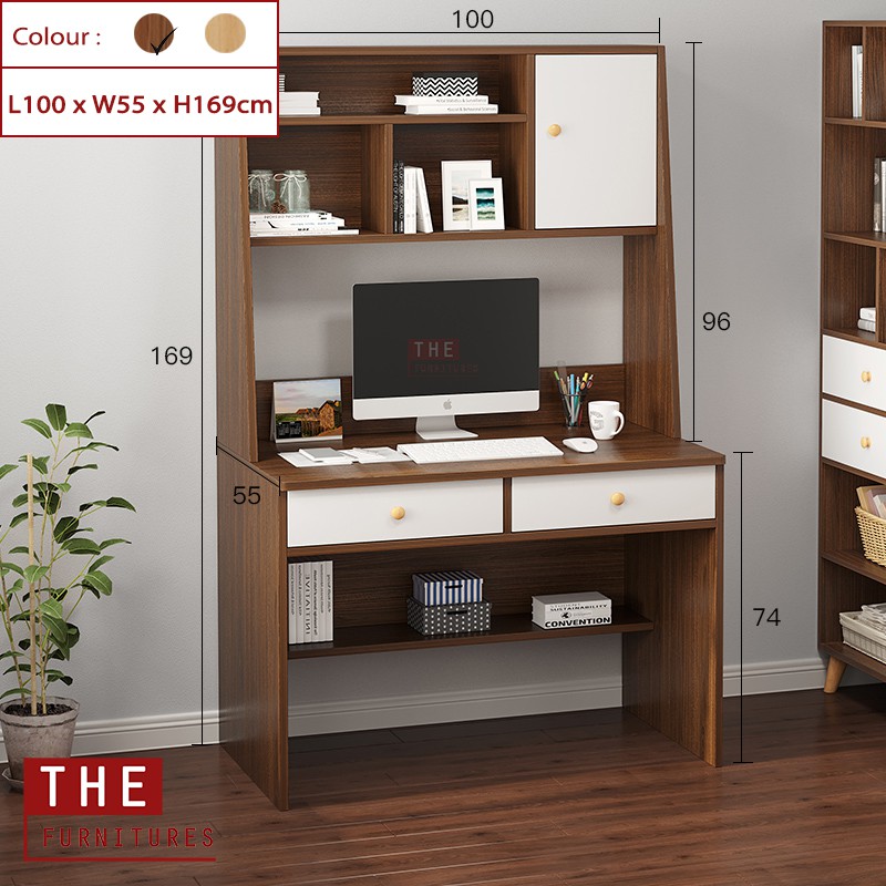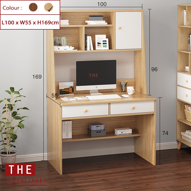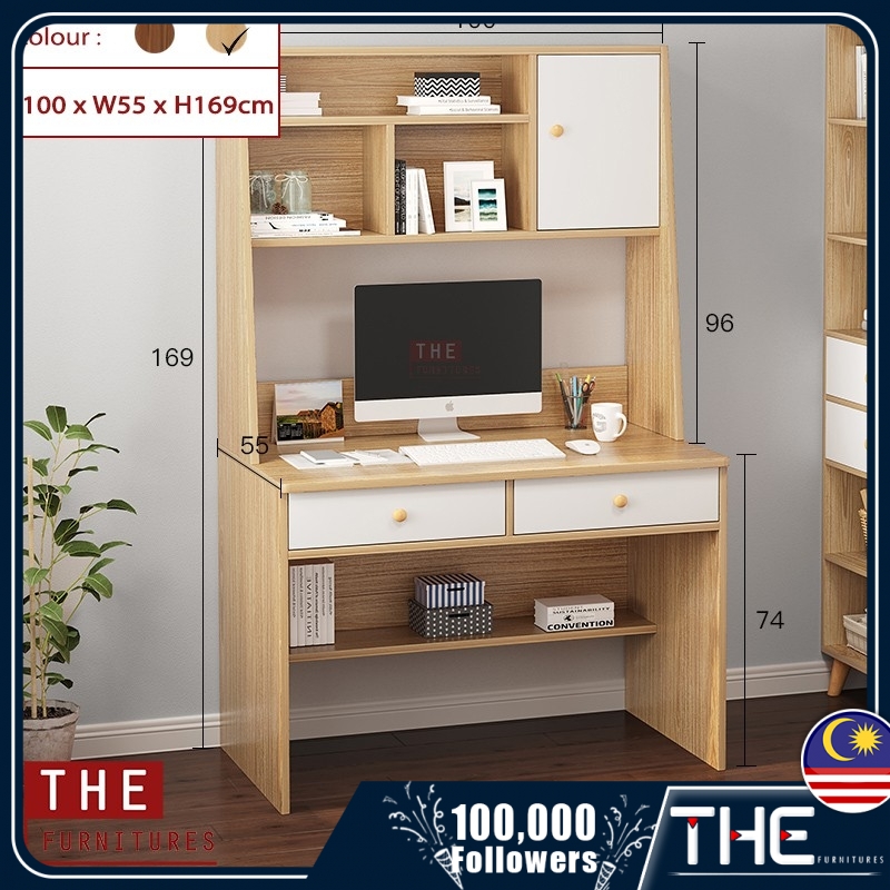 THE Multi Compartments Study Writing Table Computer Desk Study Home Office Table Nordic Style MDF (L100x W55 x H169cm)