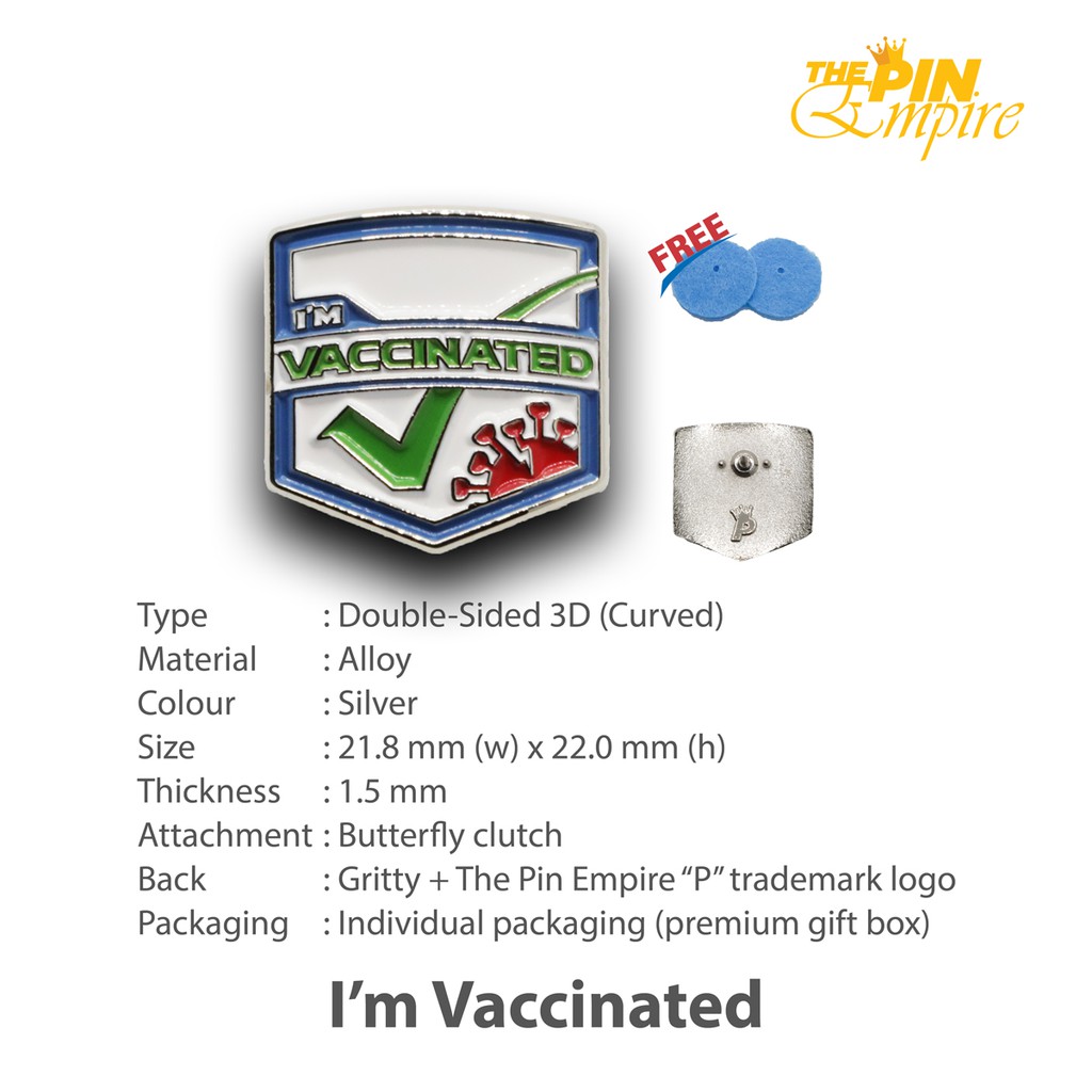 THE PIN EMPIRE I am Vaccinated Double Sided 3D Lapel Pin Collar Pin