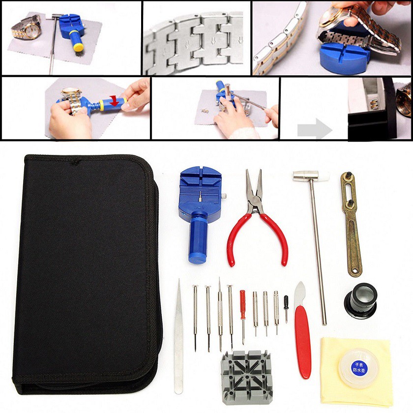 TheBags 19pcs Pro Watch Repair Tools Kit Opener Tool Belt Puncher Self Learning Equipment Pocket Tool Kit