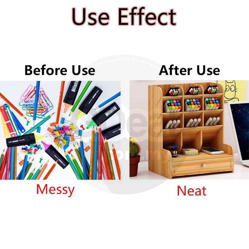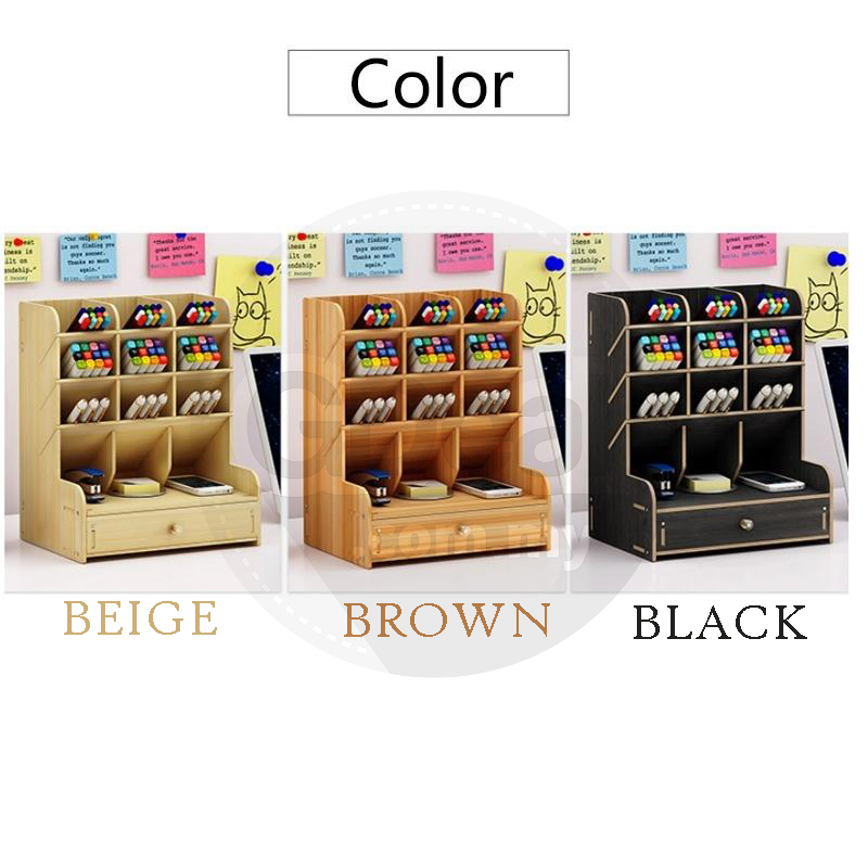 TheBags Office Student Desktop Multi Layer Pen Holder Wooden Desk Organizer Stationery Storage With Drawer