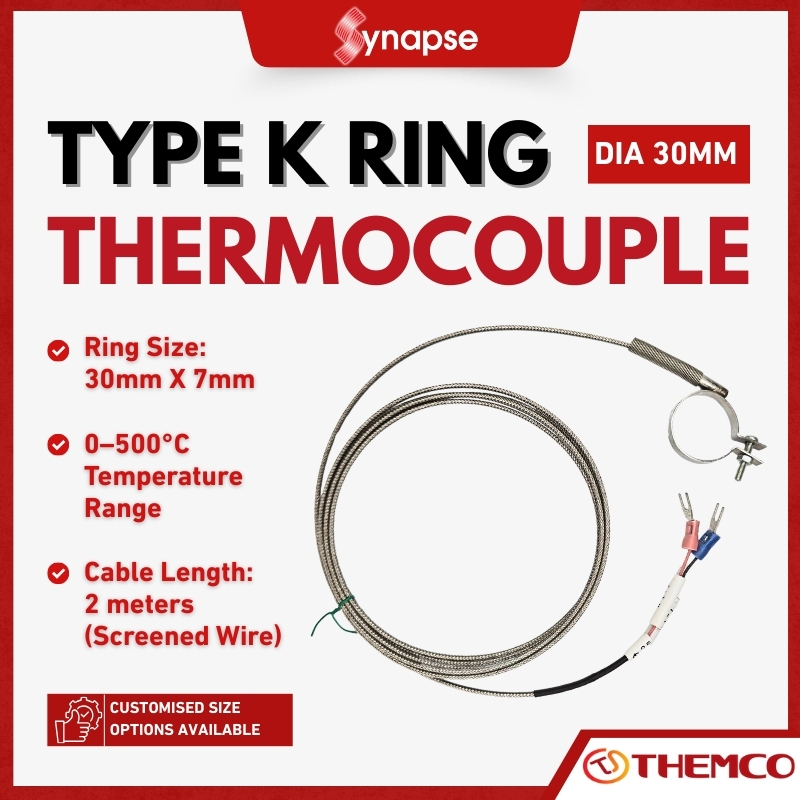 THEMCO Type K 30mm Ring Thermocouple 2m Cable Stainless Steel Extrusion Injection Temperature Sensor