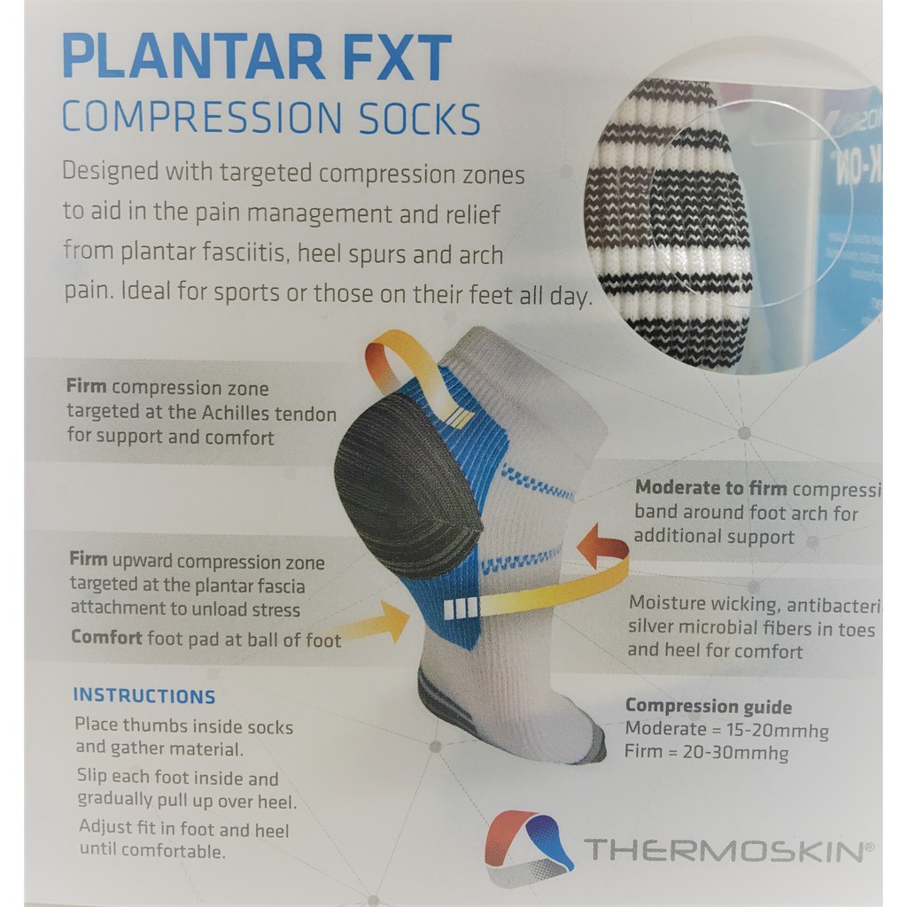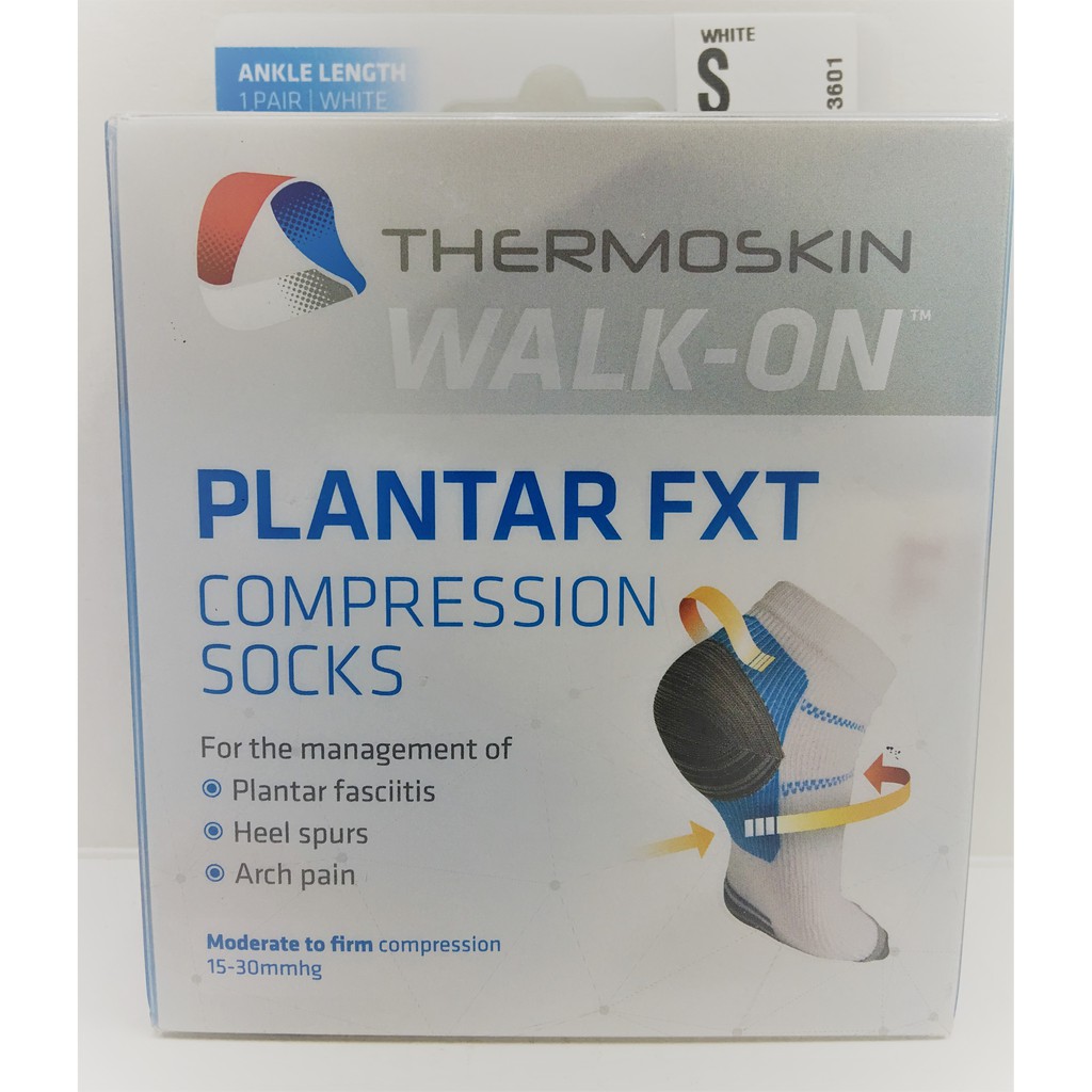 THERMOSKIN PLANTAR FXT COMPRESSION SOCKS ANKLE WHITE 1 PAIR (S/M/L/XL)