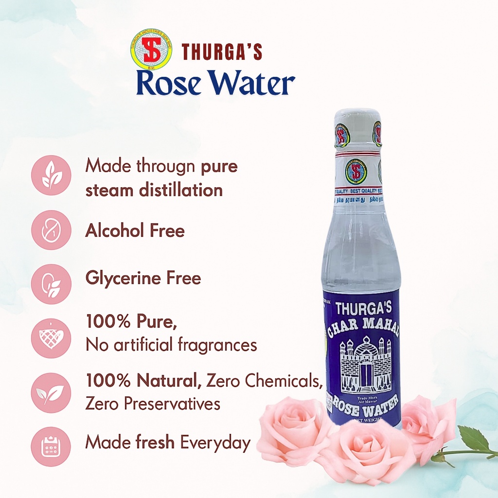 Thurga's Rose Water – Original Edible Rose Essence | Air Mawar Asli | Food & Skincare Use | Halal