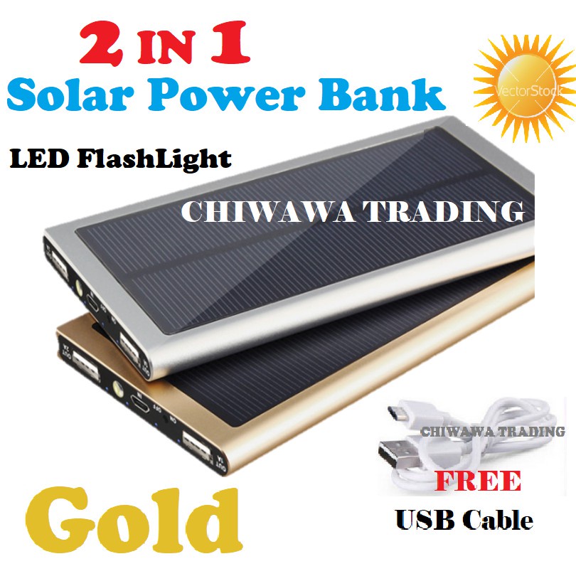 TIAN【Free Gift : USB Cable】2 IN 1 30000mAh Solar Power Bank Battery + LED Light