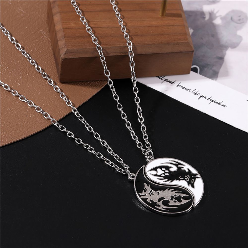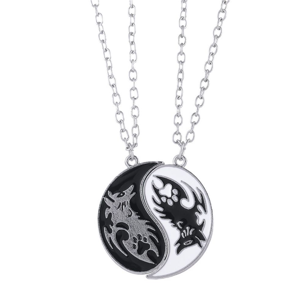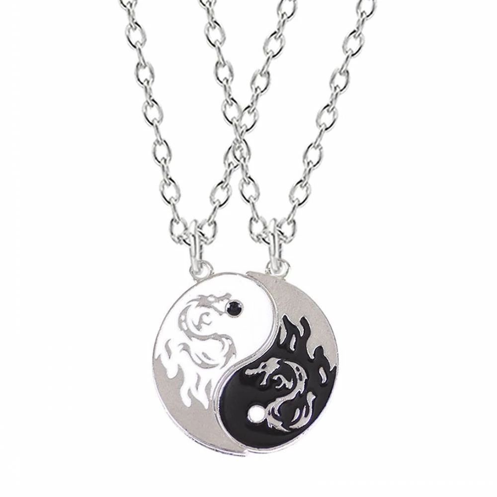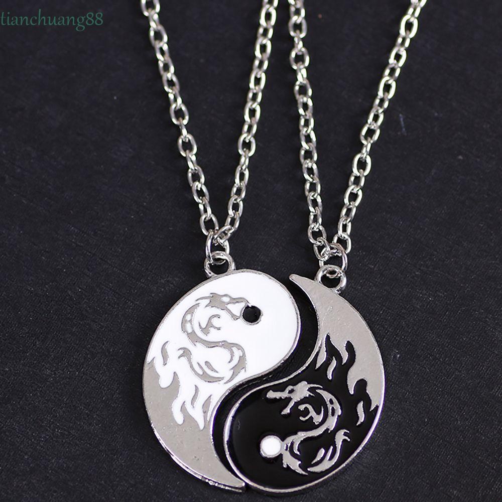 TIANCHUANG 2Pcs/set Yin Yang Necklace Classic Gossip Dragon Pendant Couple Necklace Trendy Men Friendship Necklace Fashion For Best Friends Chinese Style Clavicle chain