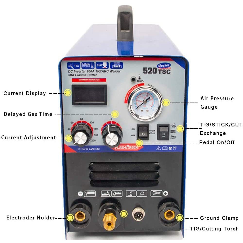 TIG/MMA/Plasma cutter Welder - Tosense 520TSC 3 in 1 Combo Multi-Function 50A Air Inverter Plasma Cutter 200A TIG/MMA Welder 220V Dual Voltage Welding Machine