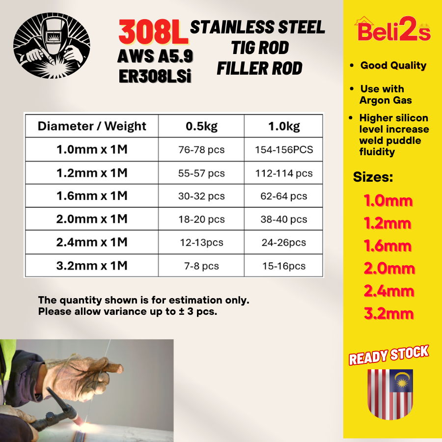 TIG Rod 308 Stainless Steel ER308LSi Welding Filler Rod 1.2 1.6 2.4 3.2