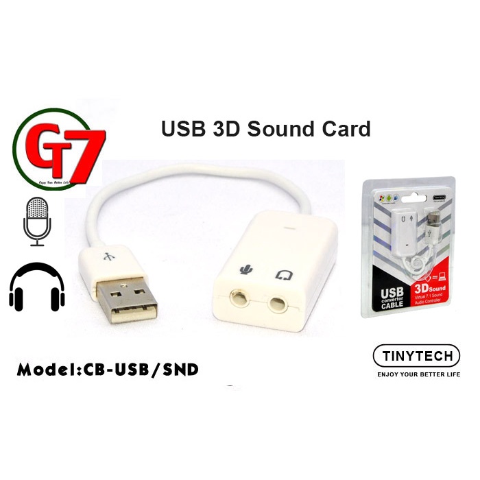TINYTECH 3D SOUND USB TO 3.5MM AUDIO SOUND ADAPTER SPLITTER MIC / EARPHONE (CB-USB/SND)