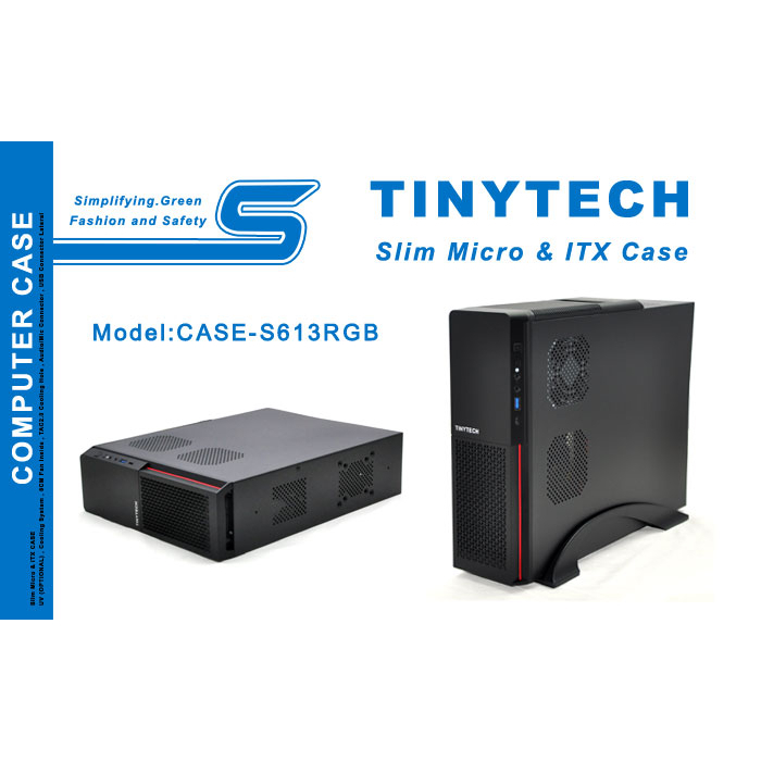 TINYTECH SLIM MICRO & ITX CASE S613 MINI CASING W/POWER SUPPLY FRONT PANEL W/ARGB USB 3.0 (CASE-S613GB)