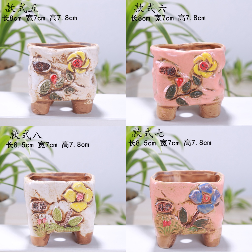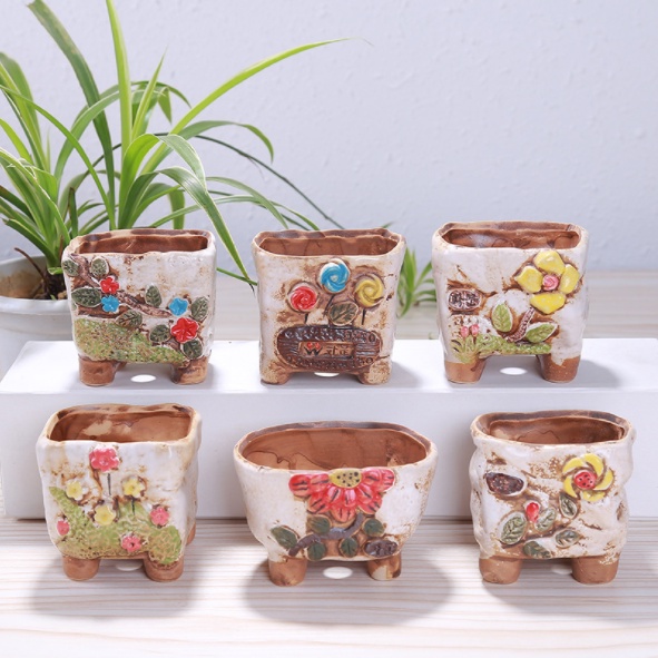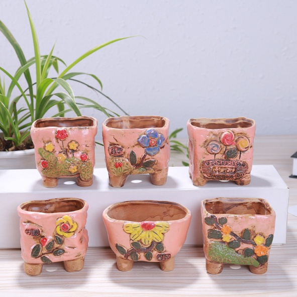 TIPTOP Flowers Design Pottery Ceramic Pot THG 052 Porcelain Flower Pot Cactus & Succulent Small Pots