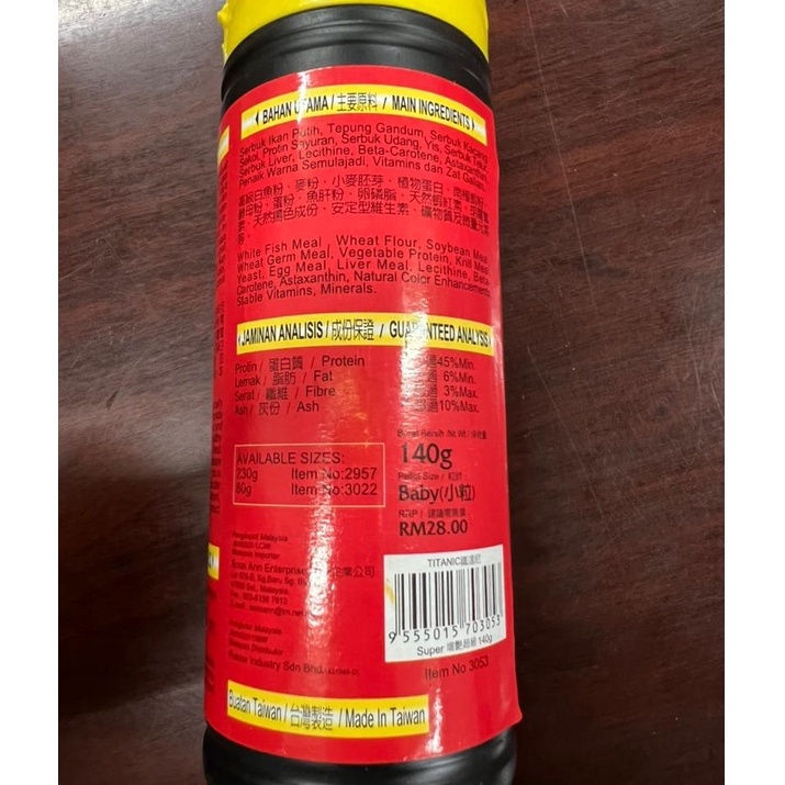 TITANIC SUPER Premium Color Enhancer Fish Food 140g | Makanan Ikan Penaikan Warna Flowerhorn RedParrot Gourami Discus