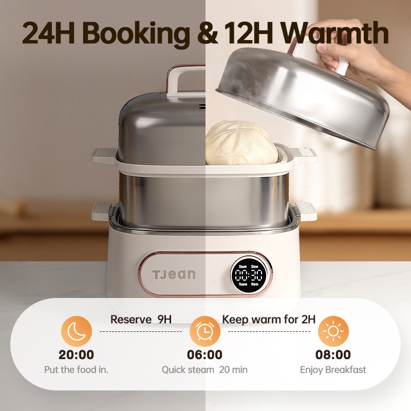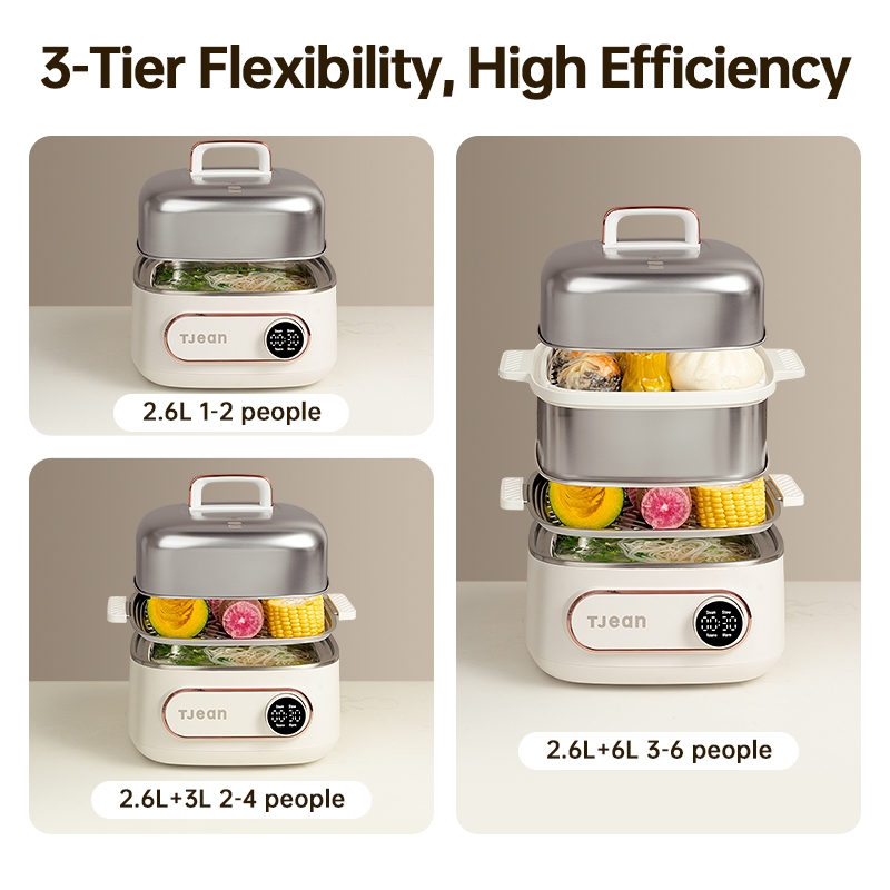 TJean multifunctional steamer with double-layer large capacity steamer and electric cooking pot