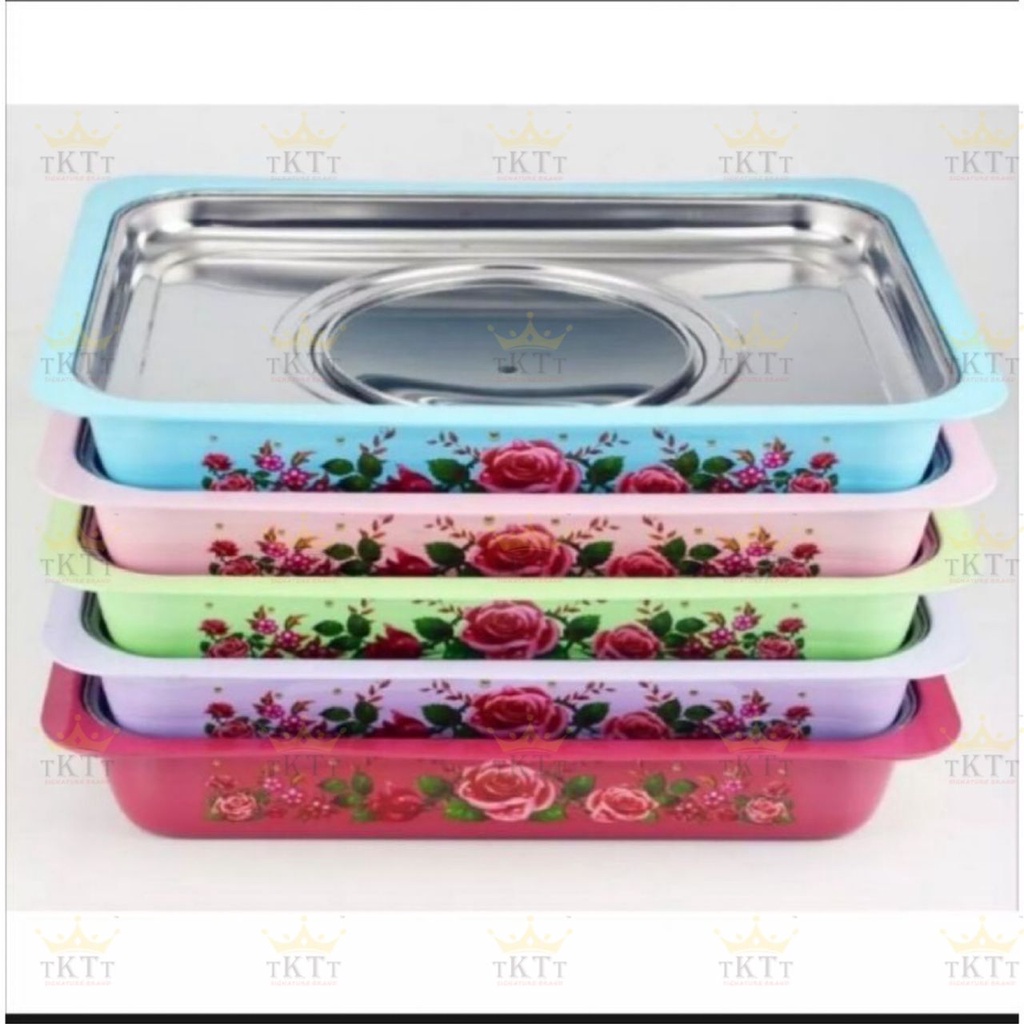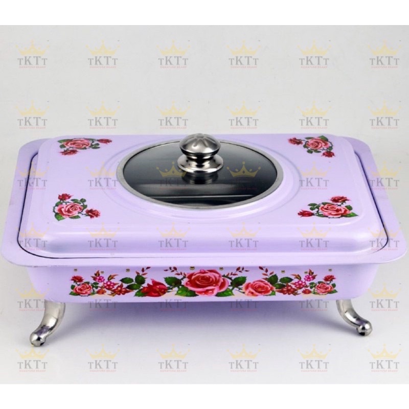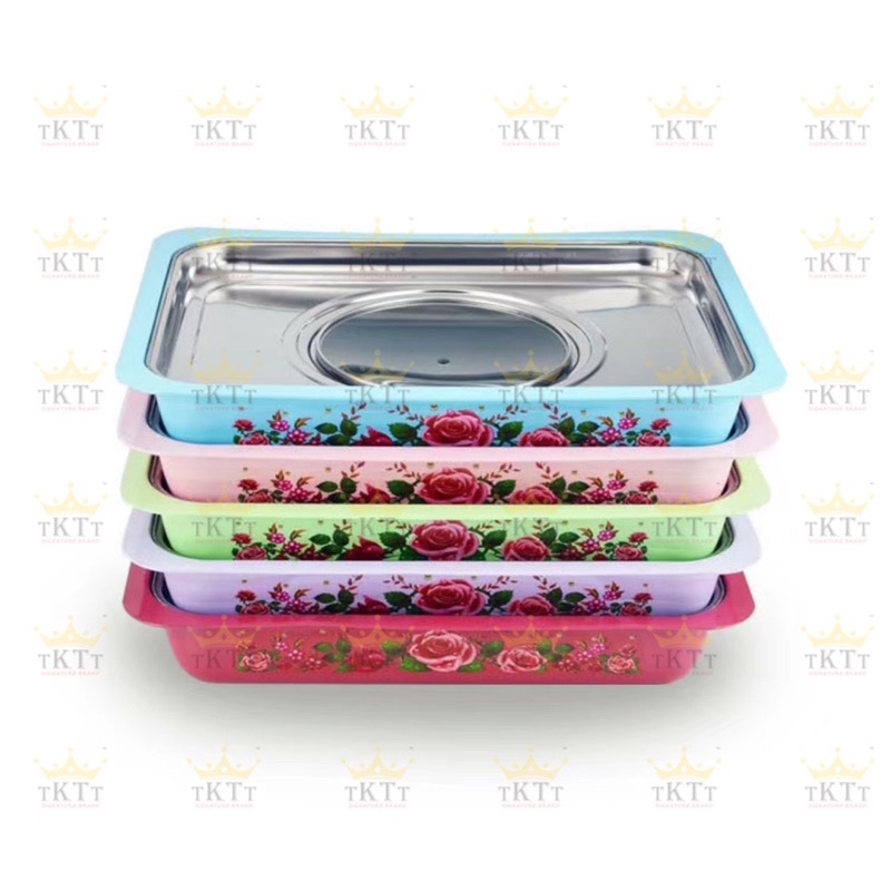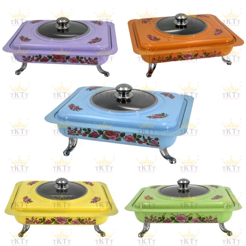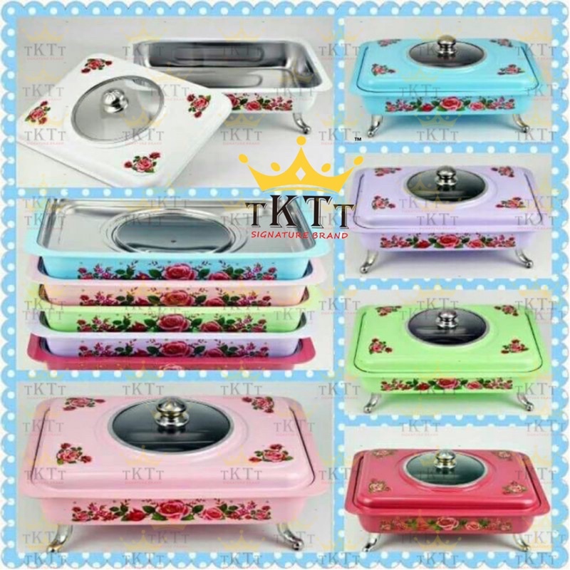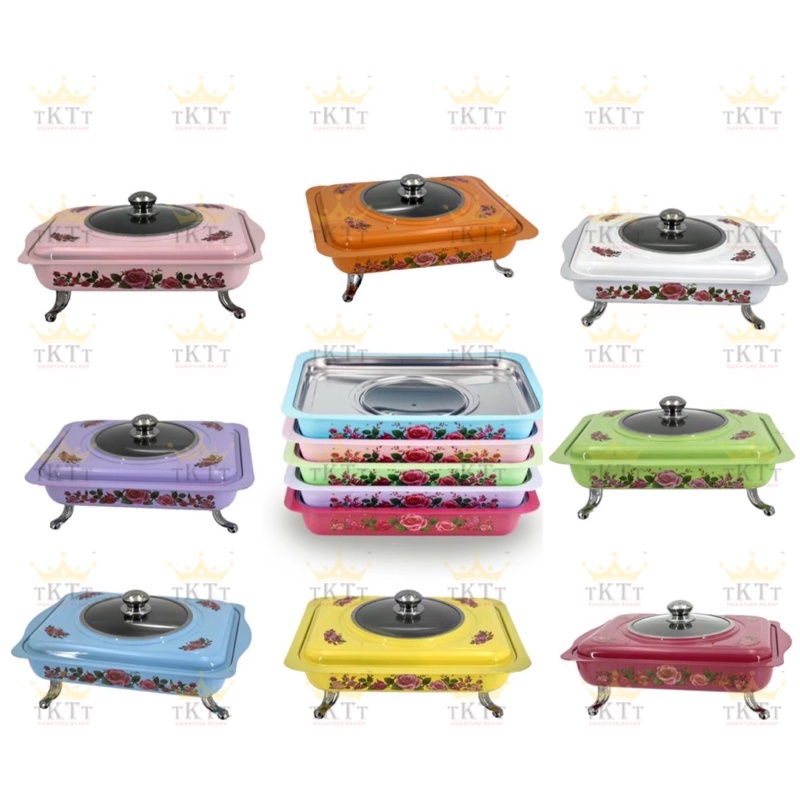 TKTT 34x28 Colourful Stainless Steel Embossed Buffet Food Pan Catering Food Serving Tray Chafing Bekas Lauk Kenduri Set