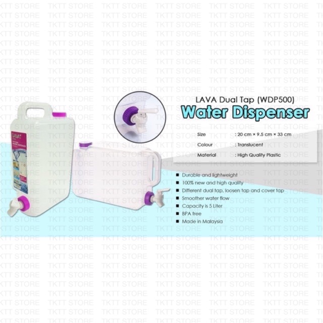 TKTT LAVA 5 Liters Dual Usage Water Dispenser Dual Tap BPA FREE Water Storage Portable Beverage Tank Tong Air Serbaguna