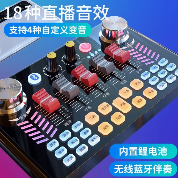 TNW V18 Sound Card Microphone Mixer Sound Card Karaoke Audio and LED Light Mixing